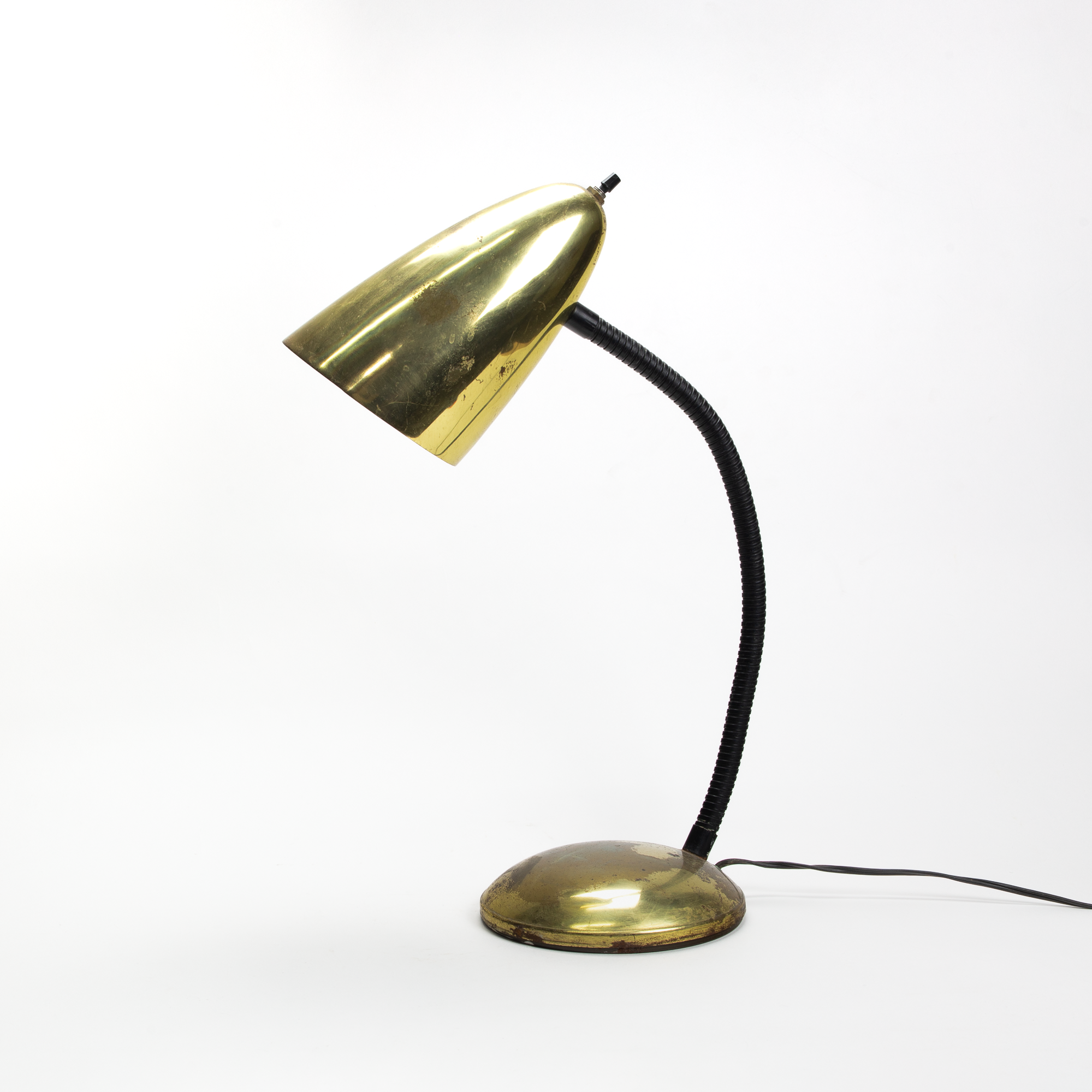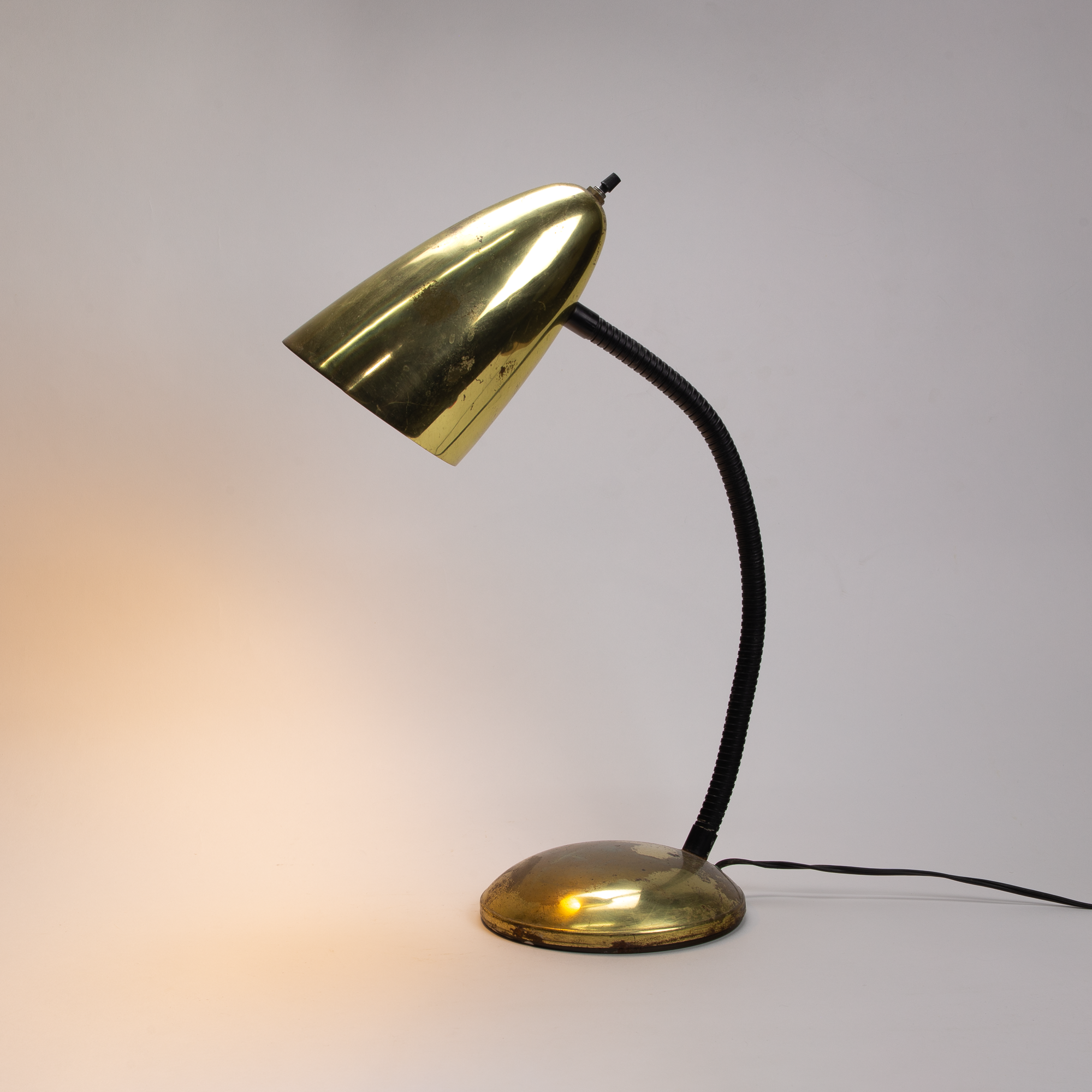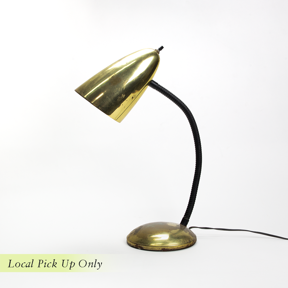 Brass gooseneck desk lamp. Switch on back of lamp head.