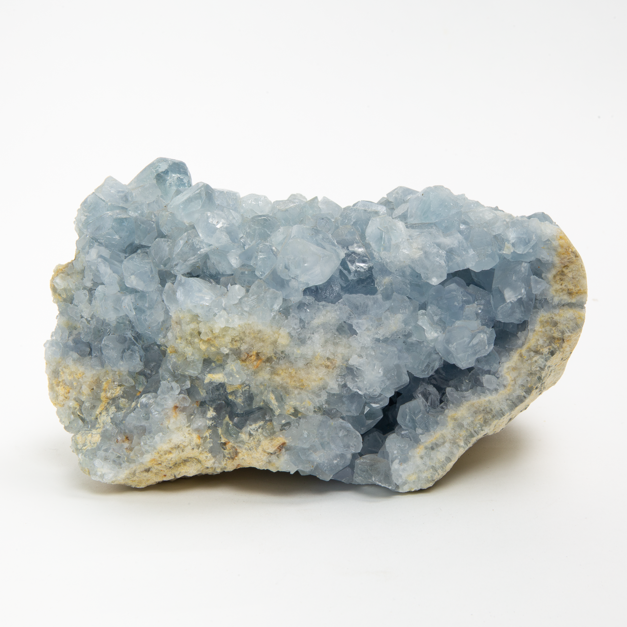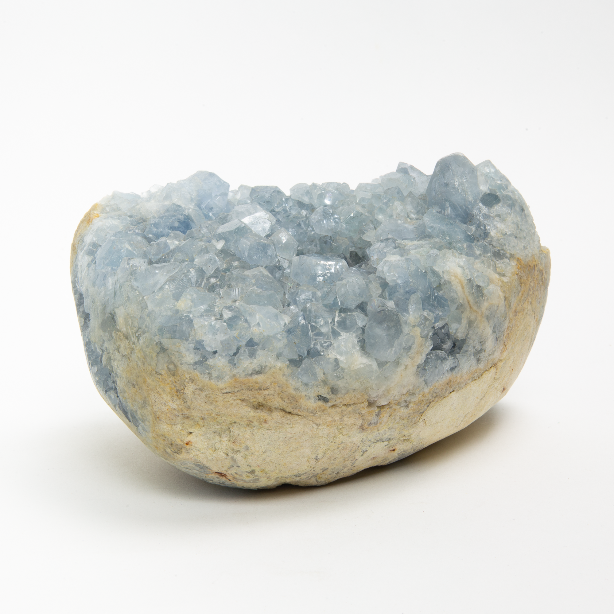 A soft blue Celestite Geode. Celestite promotes discernment and higher spiritual awareness. Use celestite for gaining understanding and promoting inner peace.