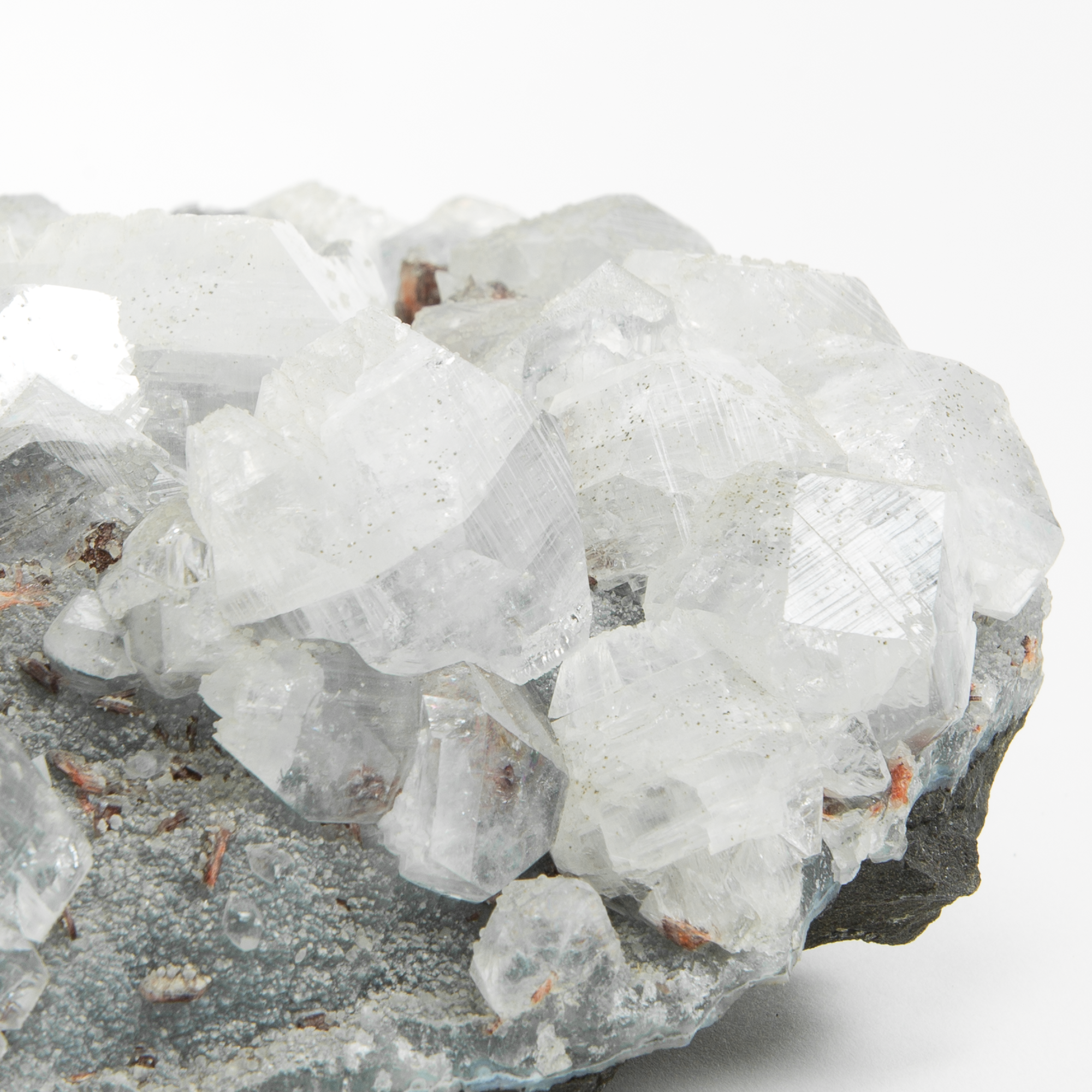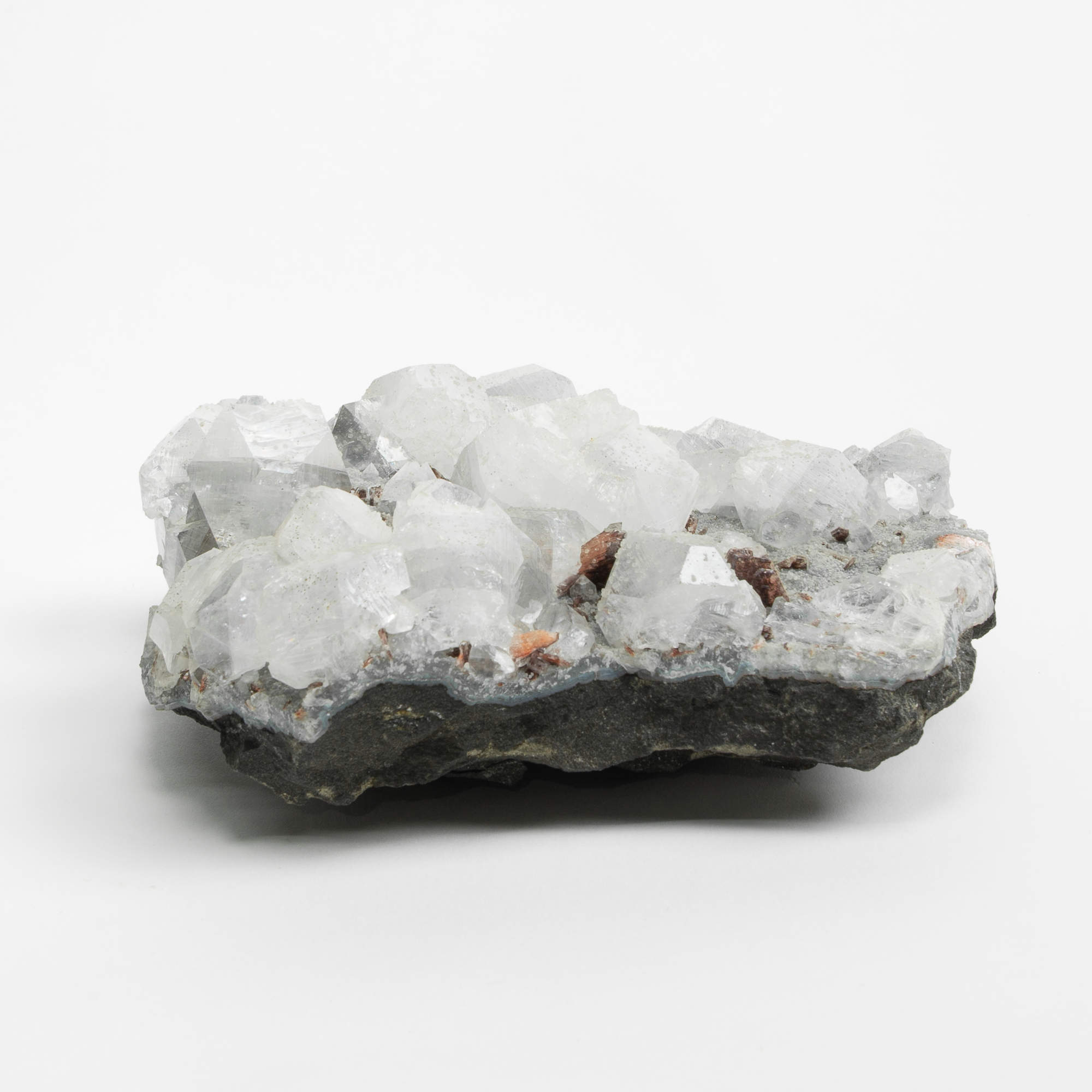Large chunks of calcite sit upon this cluster, varying from small and large. Calcite is a heart stone, promoting love and compassion for oneself and their loved ones. Use this stone for when trying to center yourself and wanting to understand your role in your community.