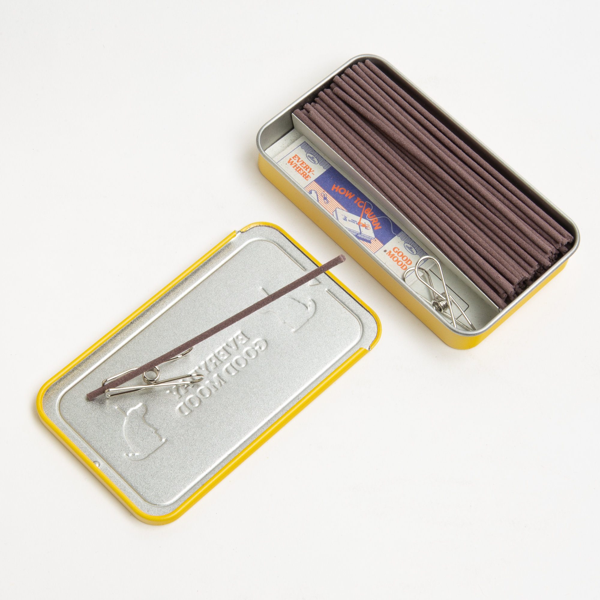 70 sticks of incense that burn for 15-20 minutes each. Sturdy metal case the can be carried anywhere. Incense clip included. Natural Ingredients. Top can be used as burning tray. Quick start guide included.