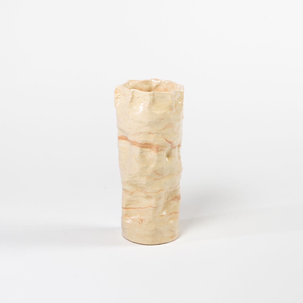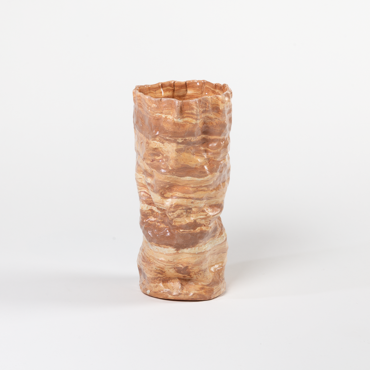 Handmade multi-colored clay artfully pinched to create a wavy texture. Glazed to be watertight.