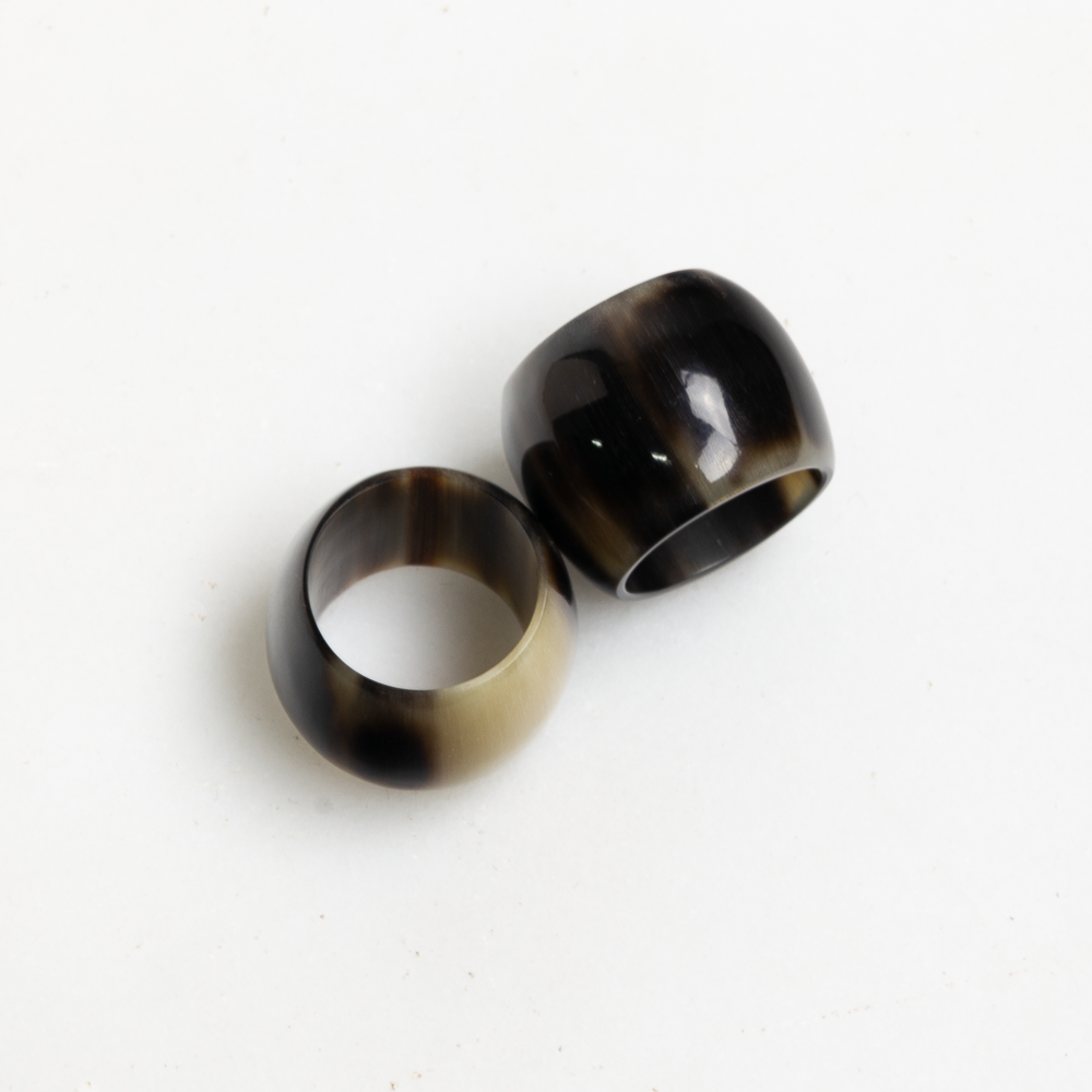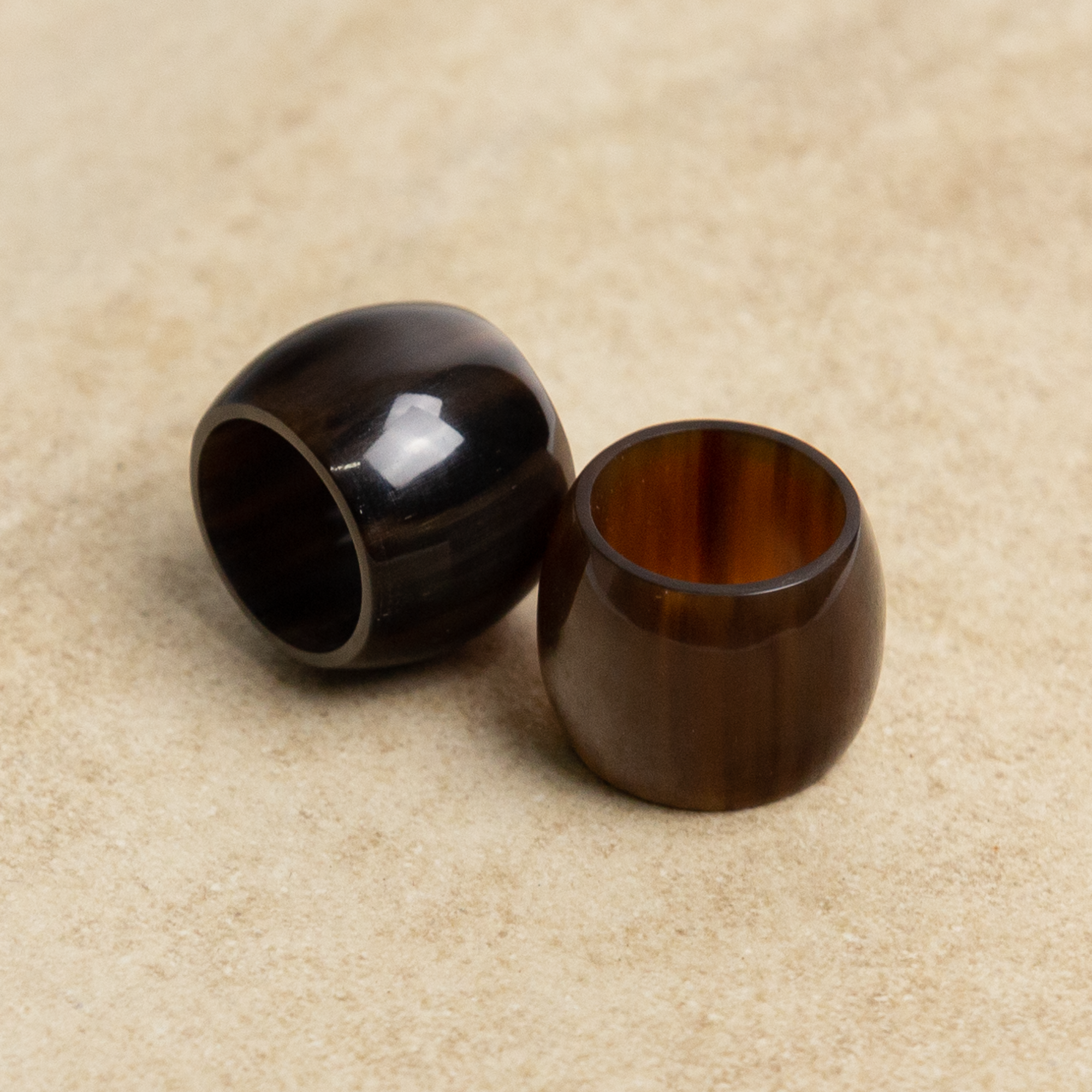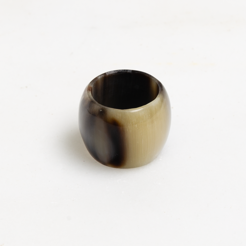 Rounded horn slide, coated in resin. Use this slide to hold your cotton bandanas together. We at Maufrais find the slide to be too slick for silk scarves. Each slide is different. Tones vary from tan to deep brown to black.