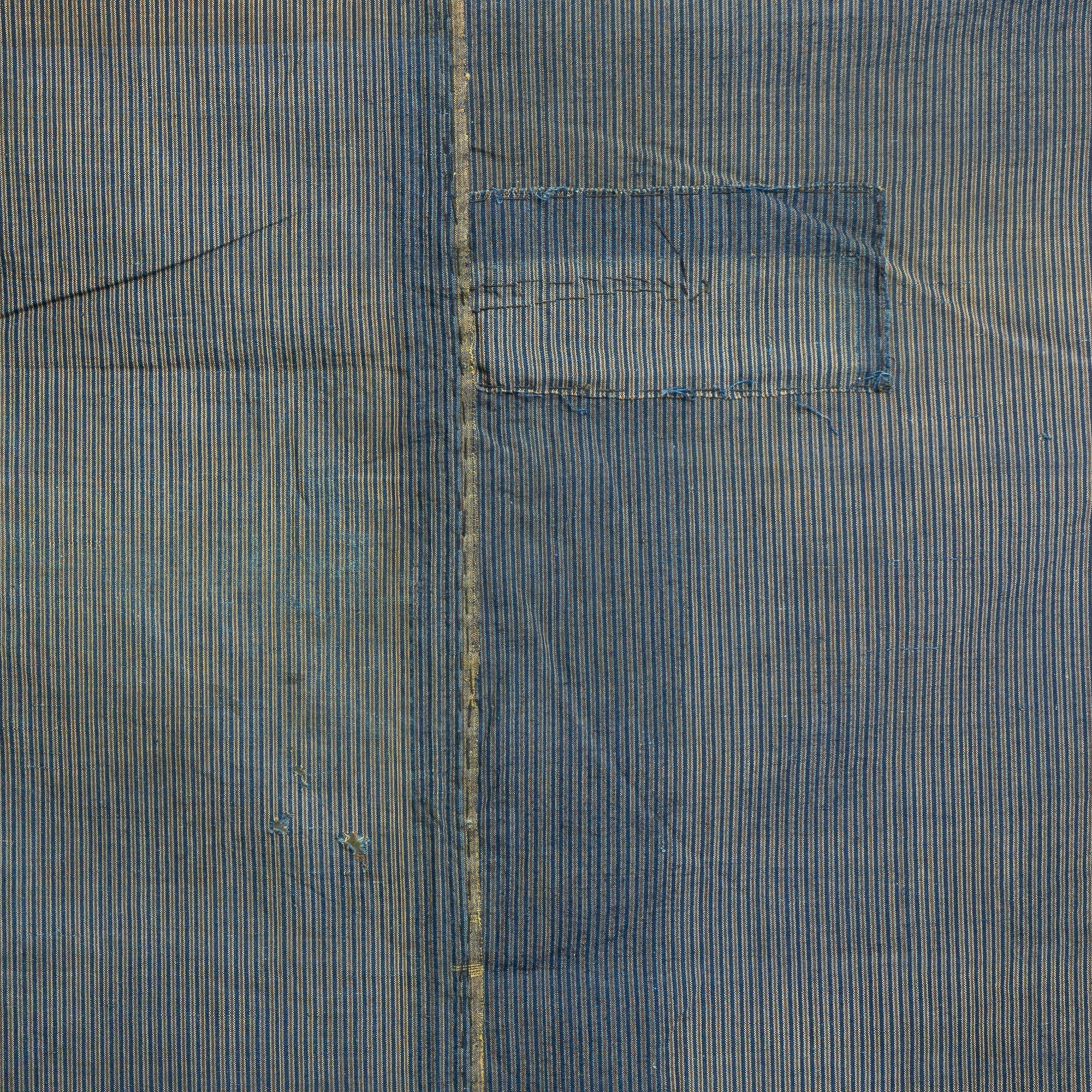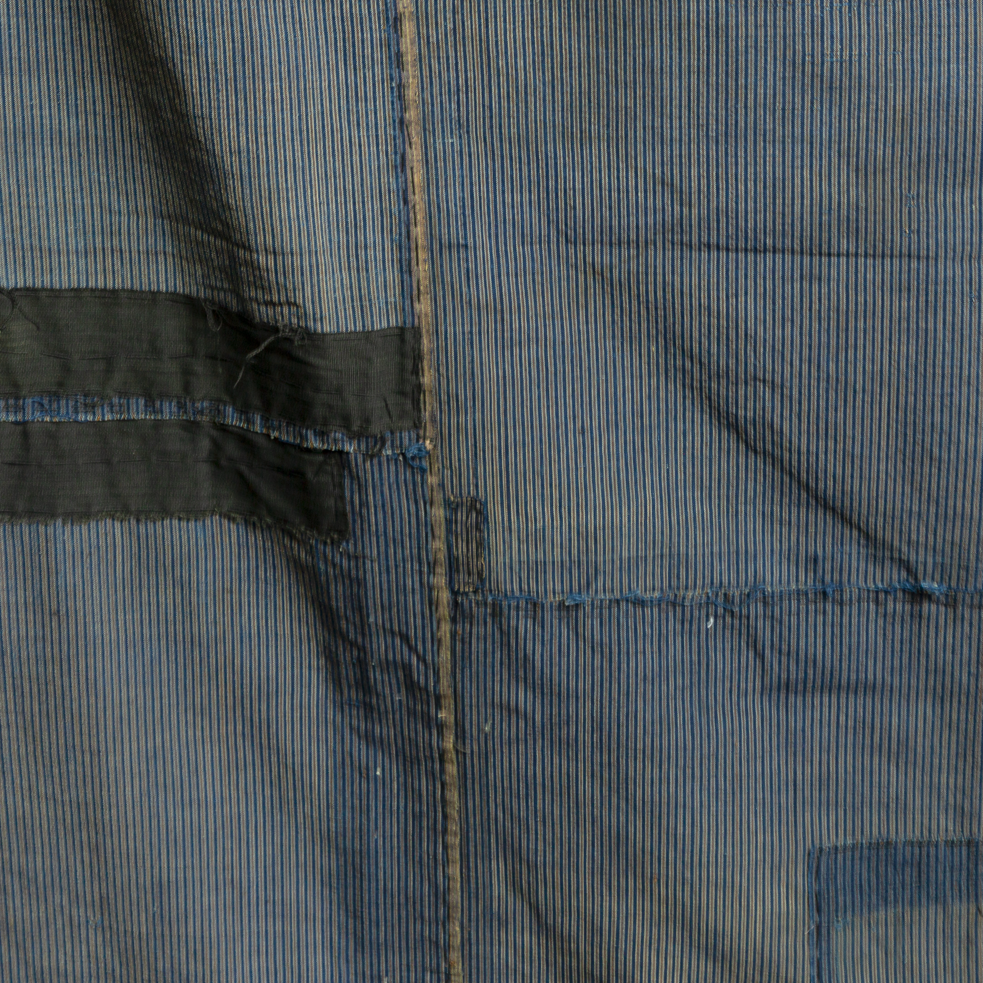Blue pattern patchwork on indigo cotton cloth. Vintage, dyed and patched from Kashiwa, Japan.