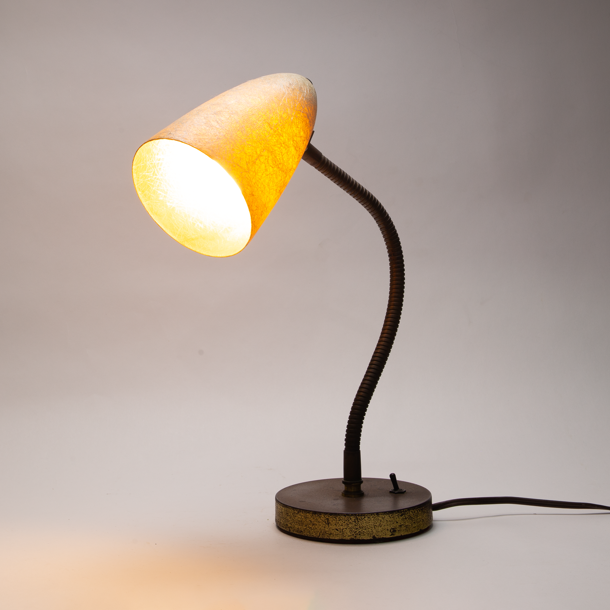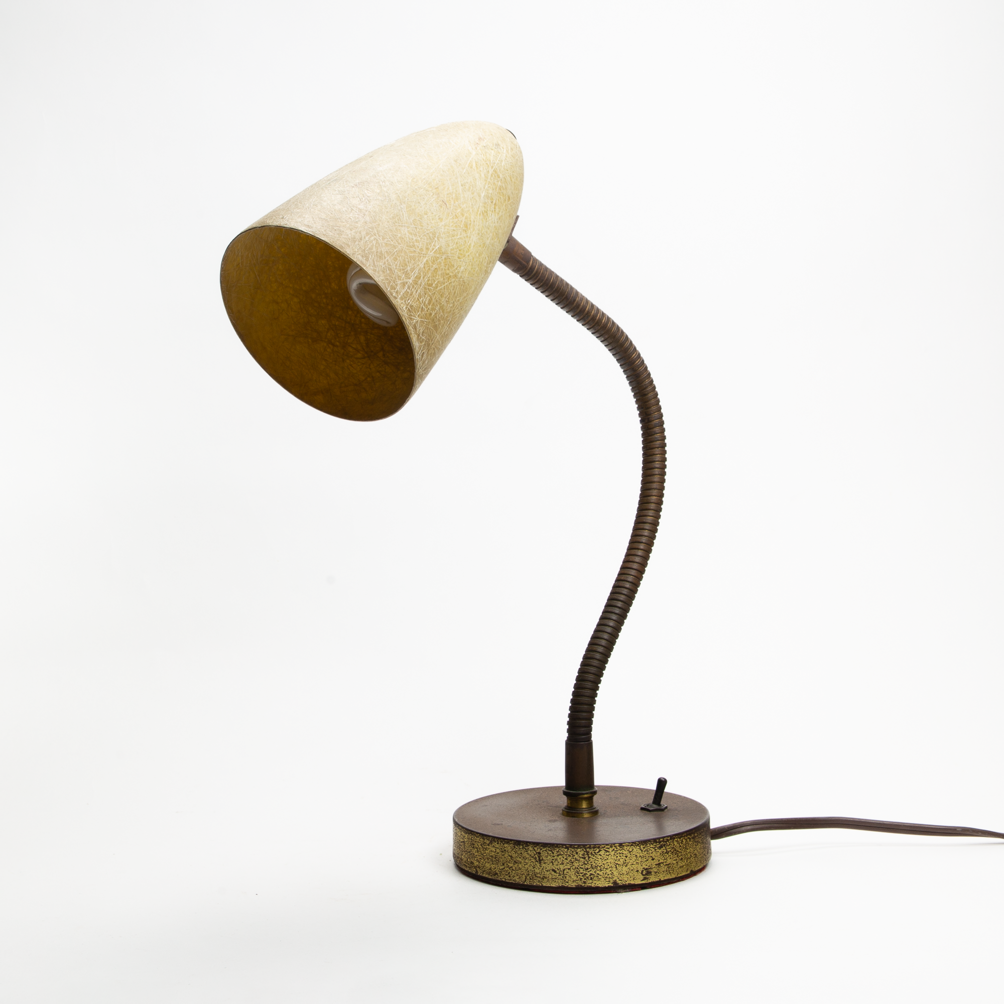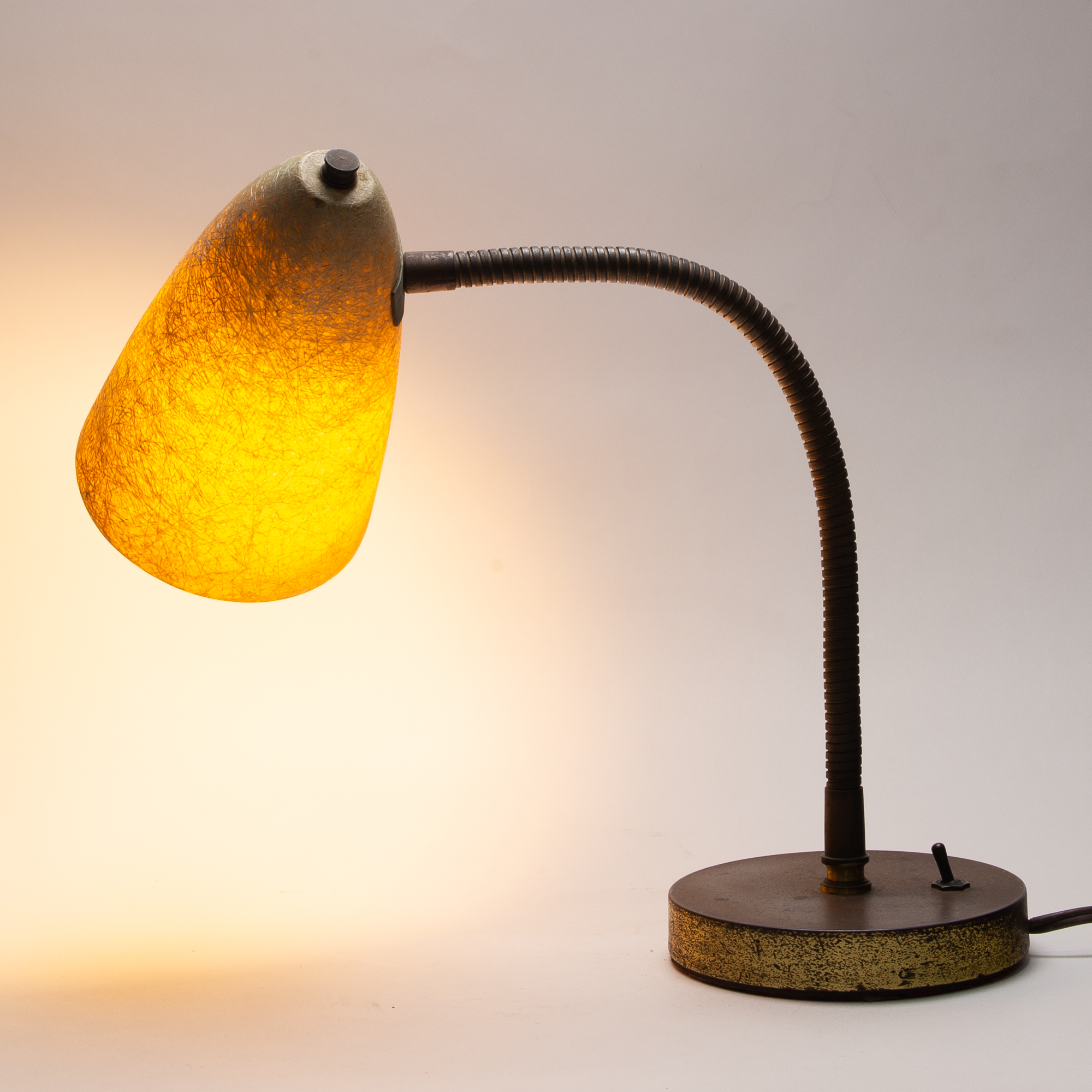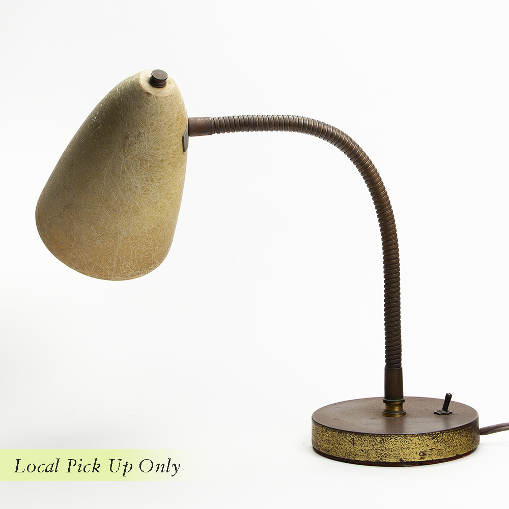 Vintage Fiberglass gooseneck desk lamp. Switch on base of lamp.