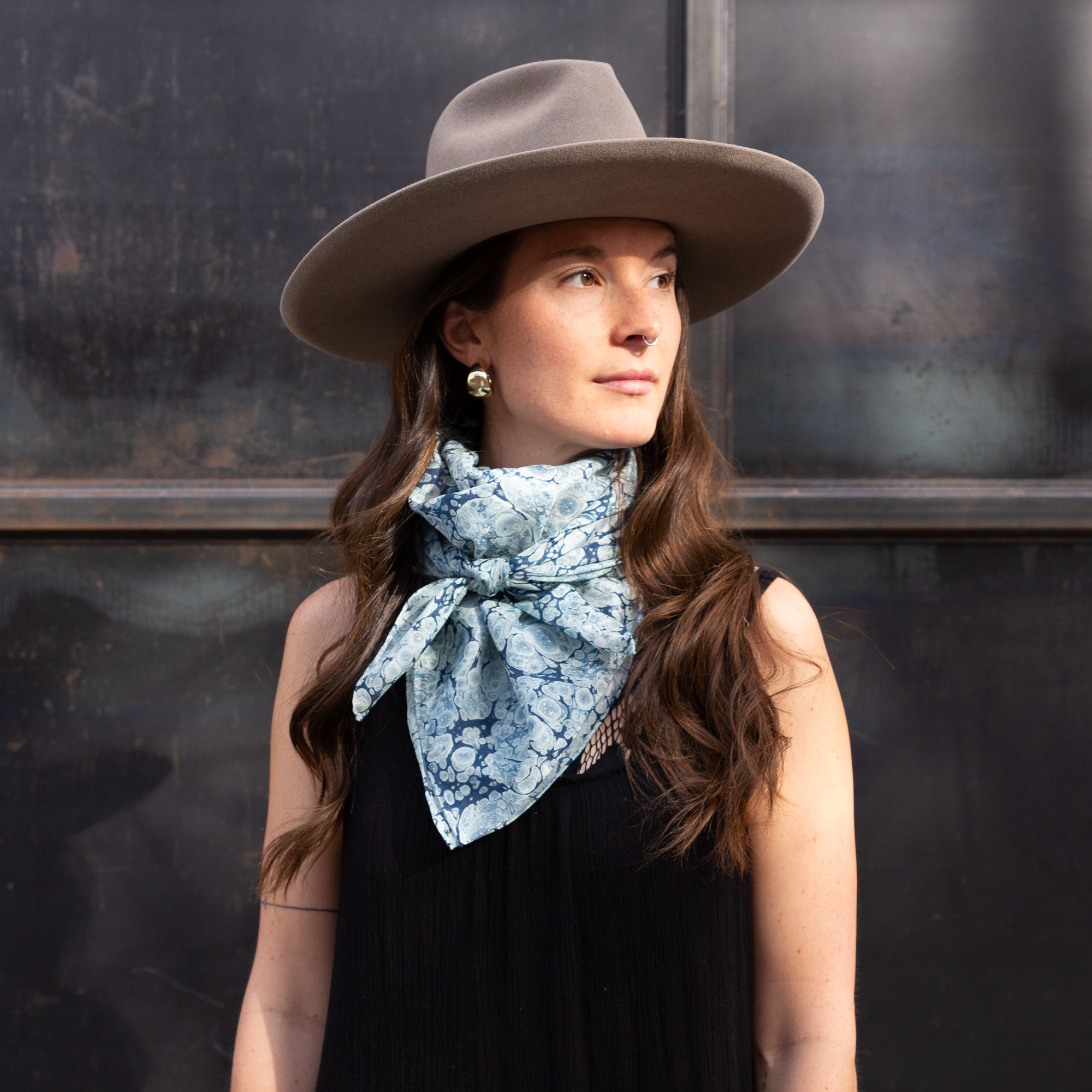Mercedez Rex Silk Scarf - Indigo Stone