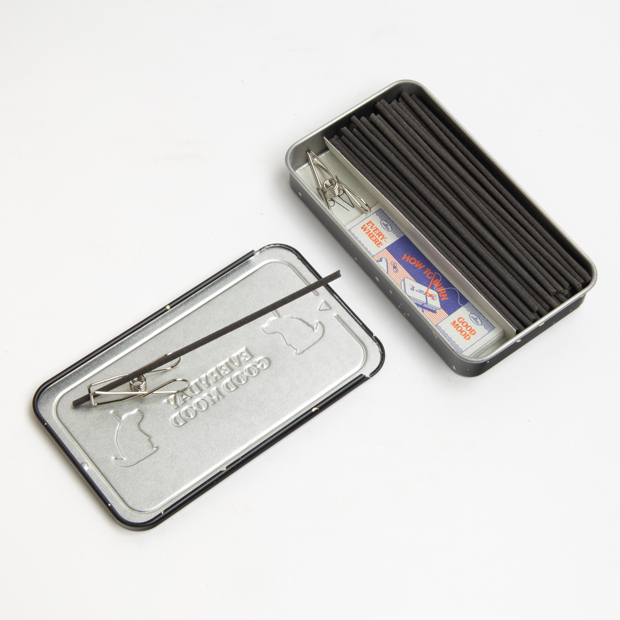 70 sticks of incense that burn for 15-20 minutes each. Sturdy metal case the can be carried anywhere. Incense clip included. Natural Ingredients. Top can be used as burning tray. Quick start guide included.