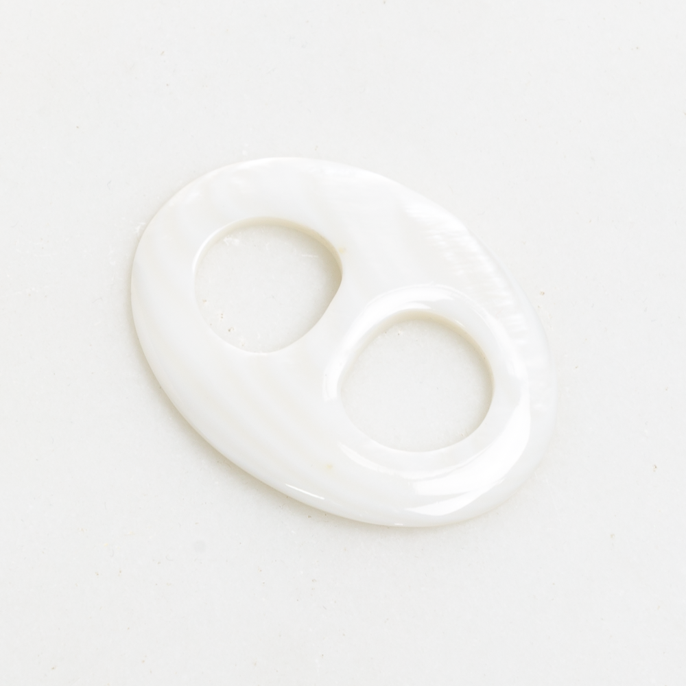 The shell slide is considered a staple accessory among the Maufrais crew. Use this slide to fasten your scarf in a variety of different ways. Lead two corners of any size scarf vertically through the top then bottom hole to create a bolo tie effect. Cross each corner through either side of the slide horizontally for more volume.
