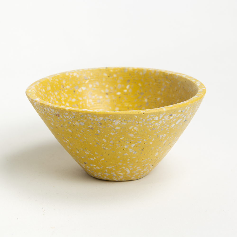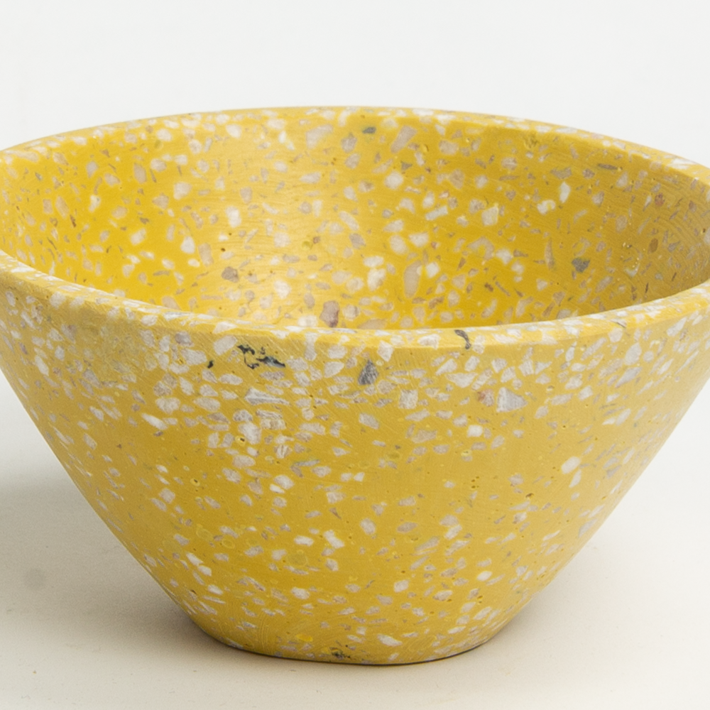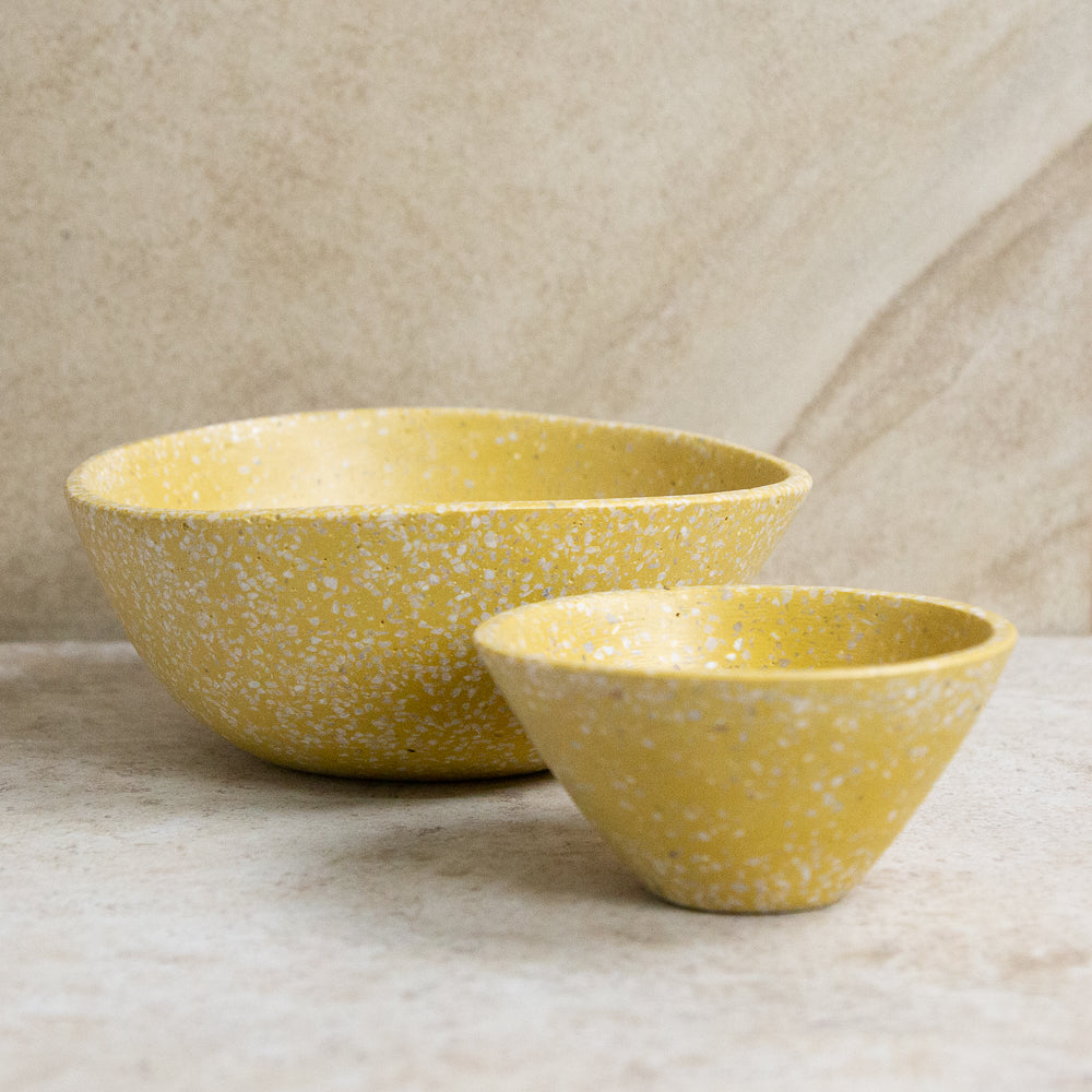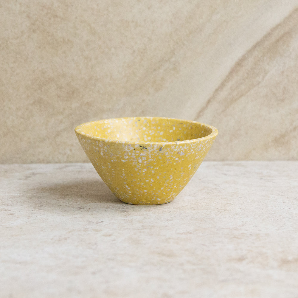 Abstract and unique, this gorgeous yellow bowl features bright speckled stone fragments to combine quirky and timeless effortlessly.
