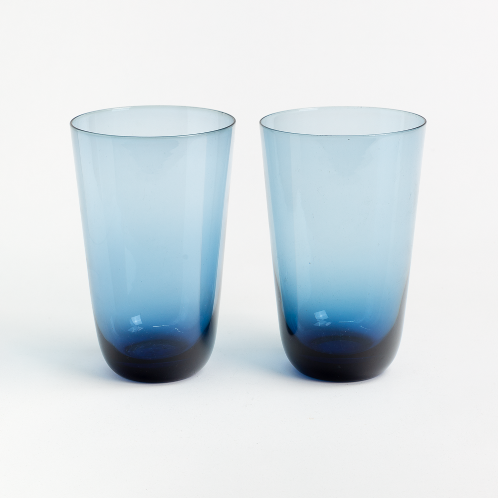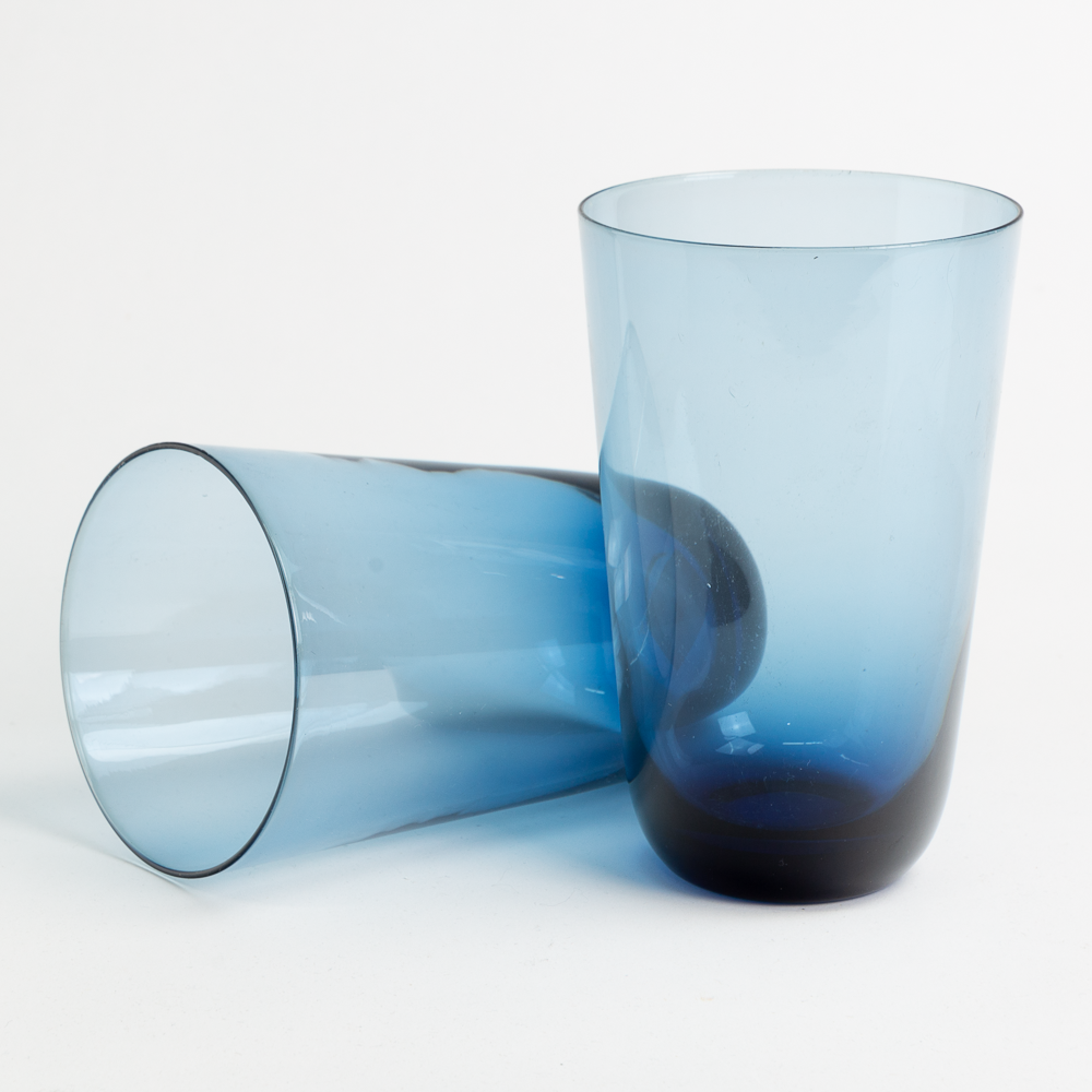 Pair of tall blue hand blown glass cups.