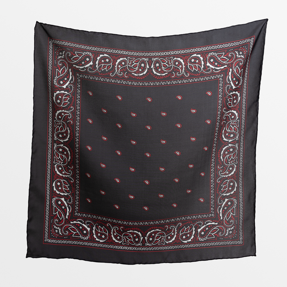 The Small ‘Bob Wire’ Wild Silk Rag - Black Bandana Print