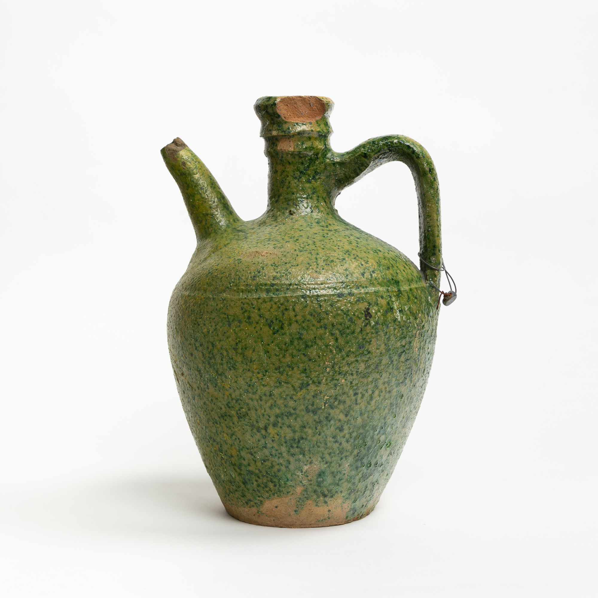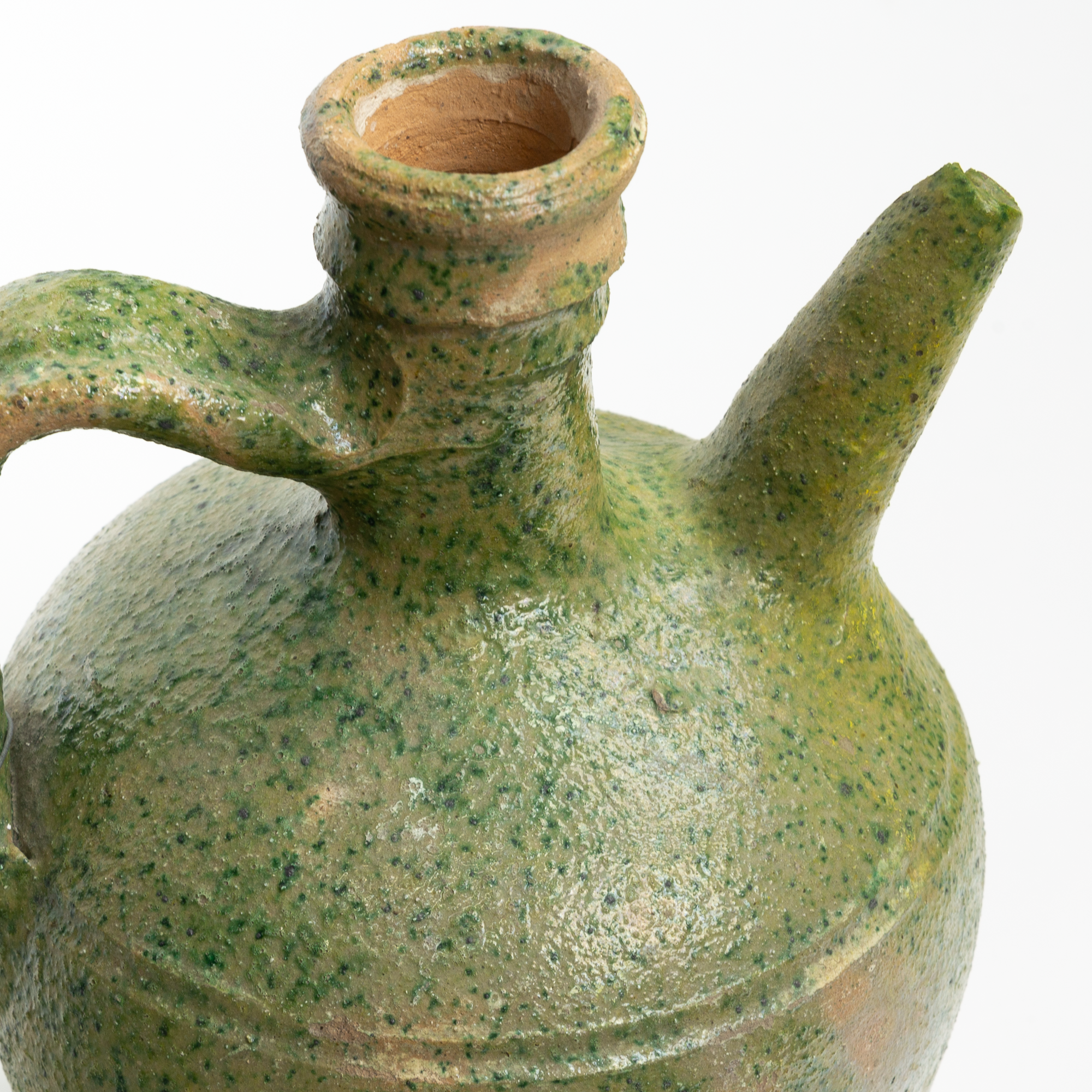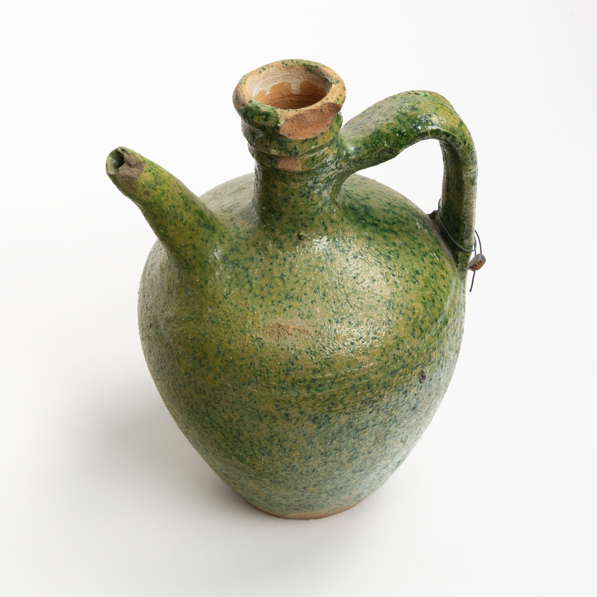 Antique green speckled glazed Turkish water pot. Not water tight.