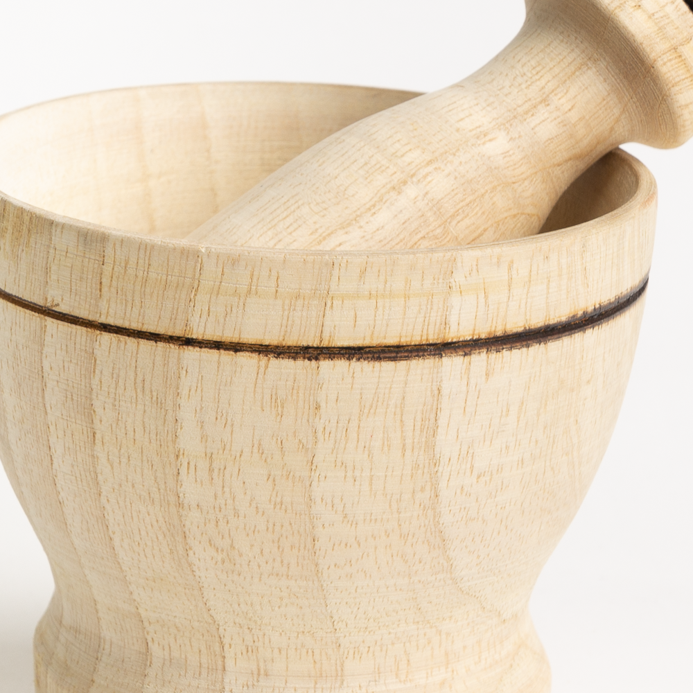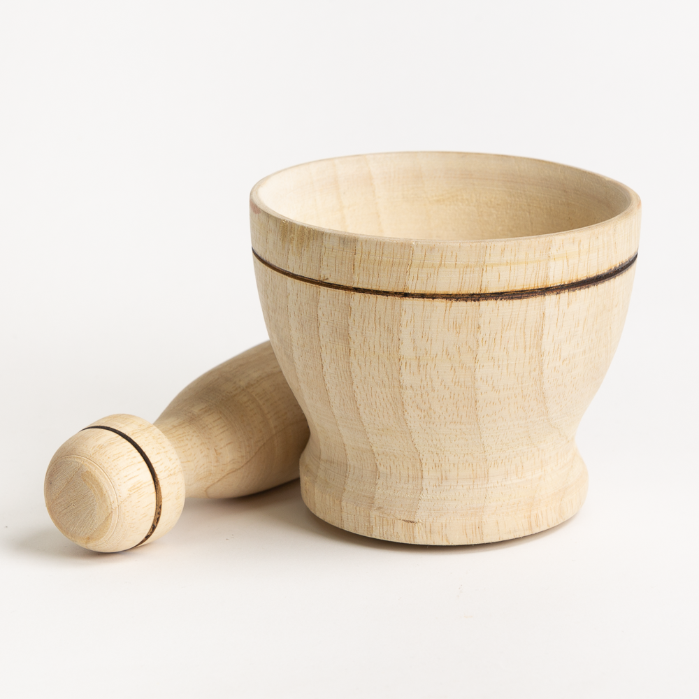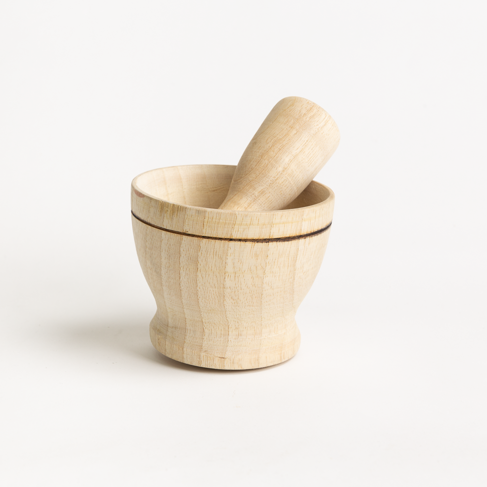 The Wooden Mortar, hand crafted, comes with a matching pestle that compliments one another. Rounded bottom for more control. Made in Mexico.