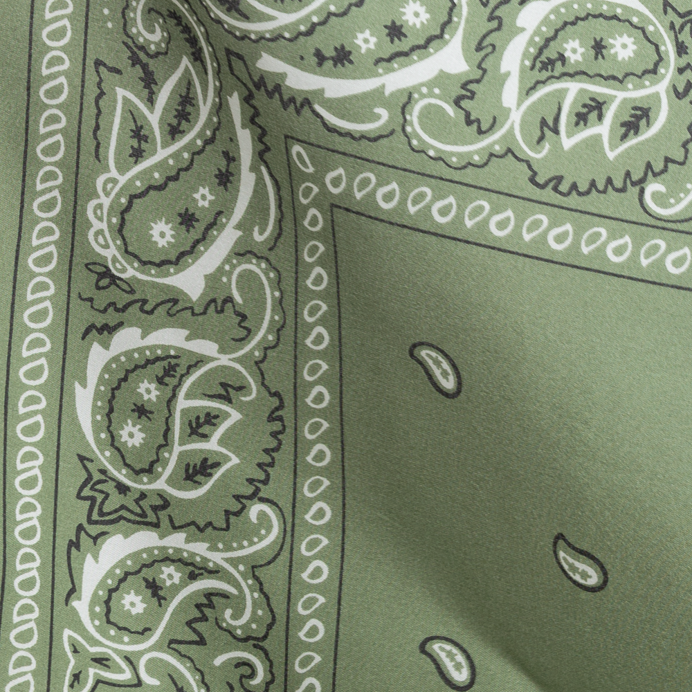 The Small ‘Bob Wire’ Wild Silk Rag - Olive Bandana Print