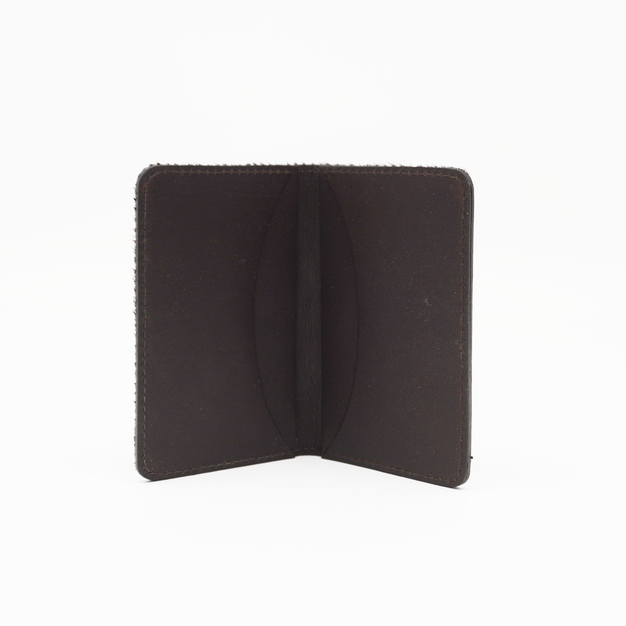 This bi-fold four card slot card case is perfect for just the essentials. Constructed from cowhide or roughed up leather on the outside and veg tan or cowhide continuing on the inside. This classic cowhide wallet is small enough to fit in your pocket or small purse, and just looks oh, so good. Softens over time.