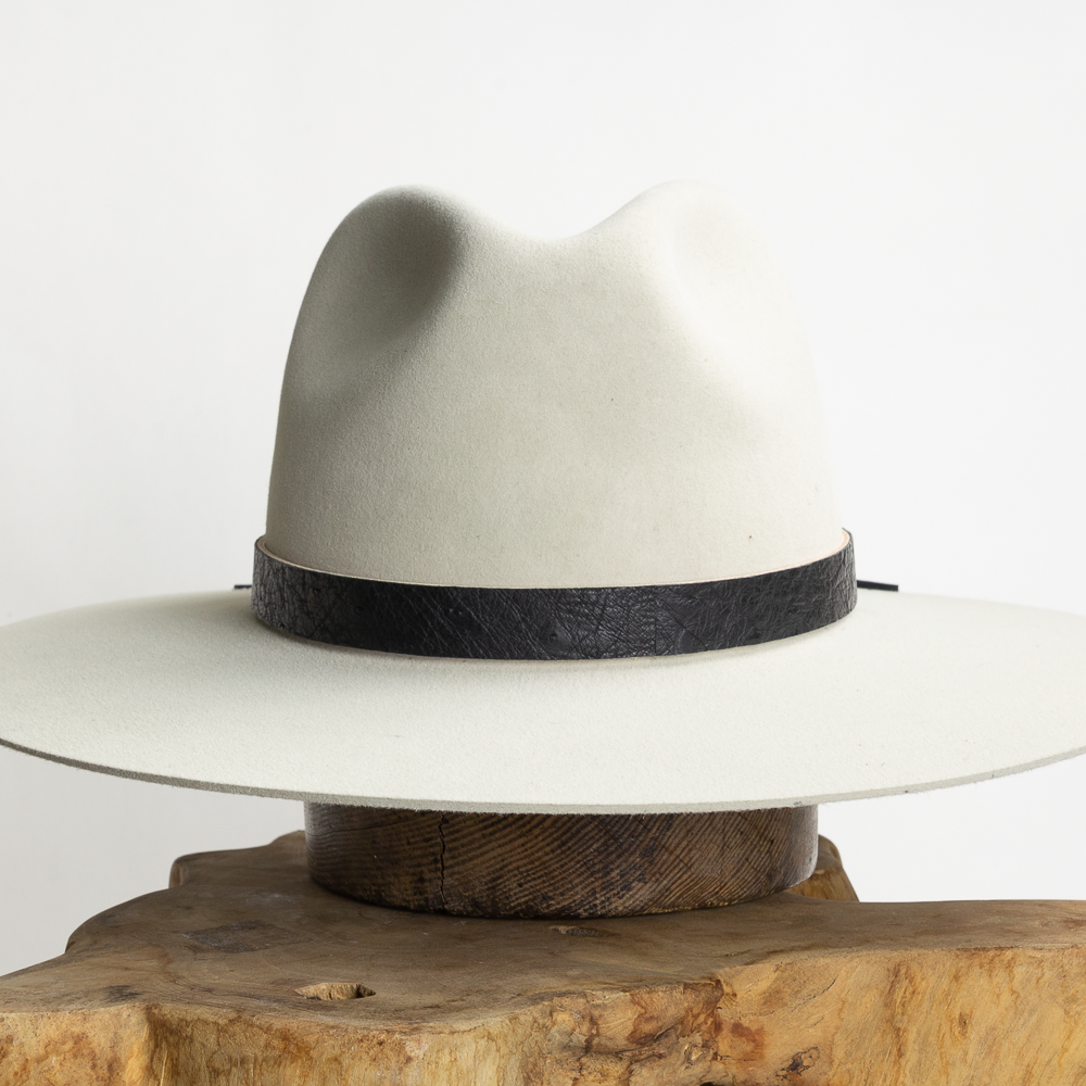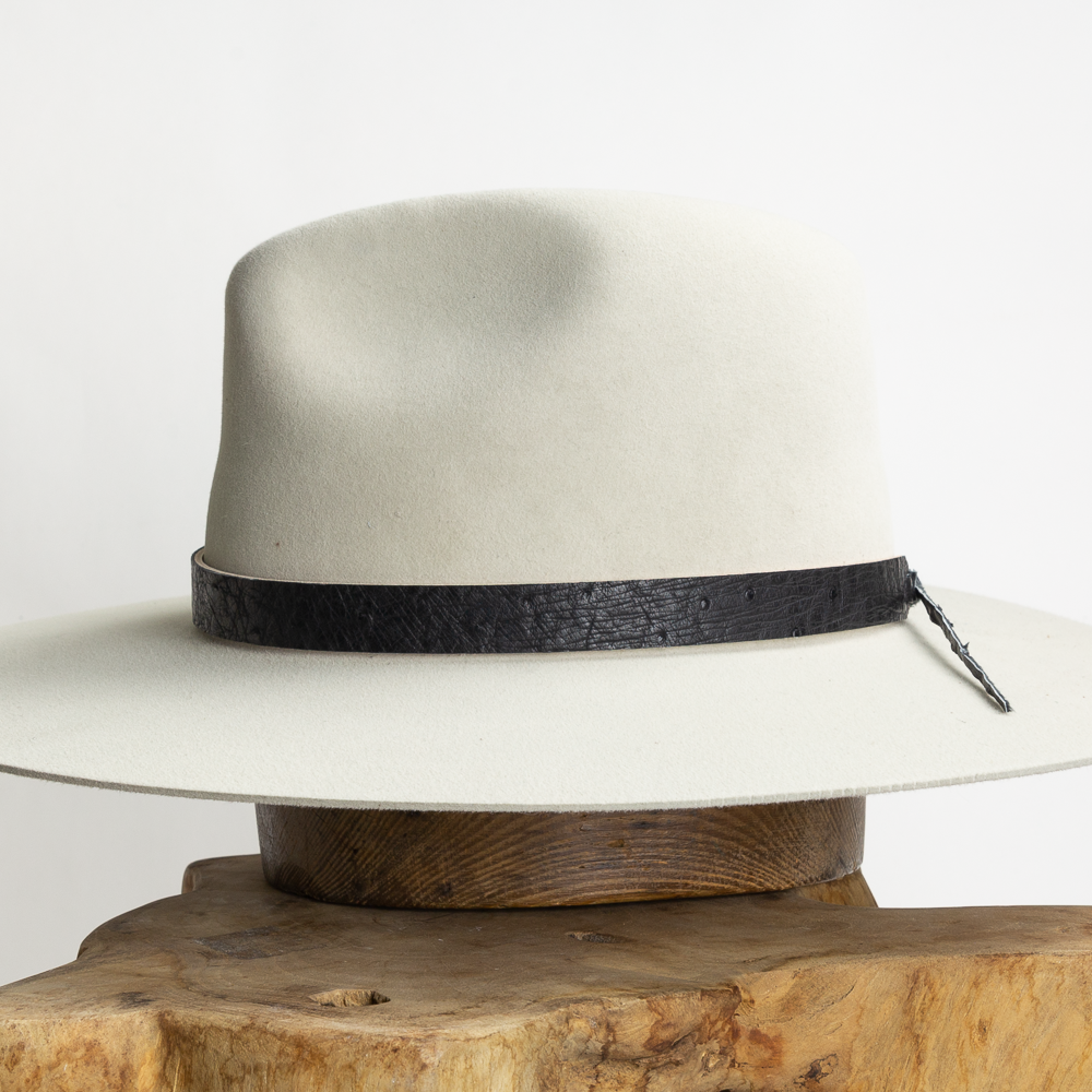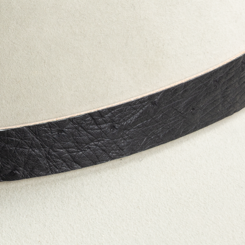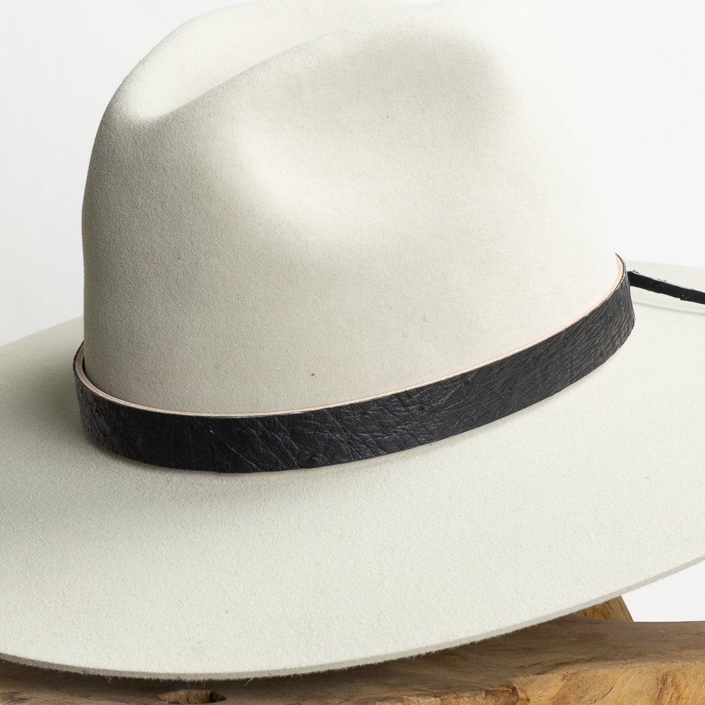 Ostrich leather bands that are more versatile than ever. The tie on this band makes it easy to swap out. Simply pull your band tight and secure with a square knot on either the left side or back of your hat. Handmade right here in Austin, TX.