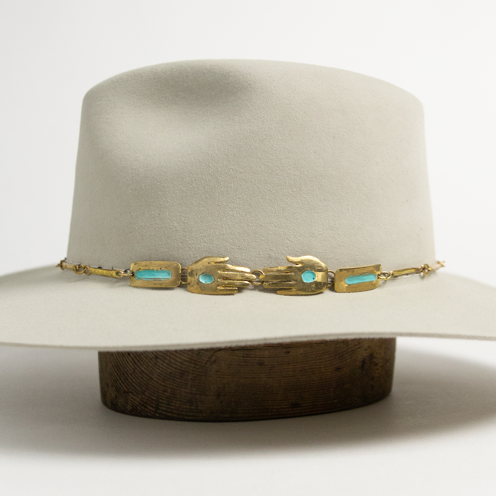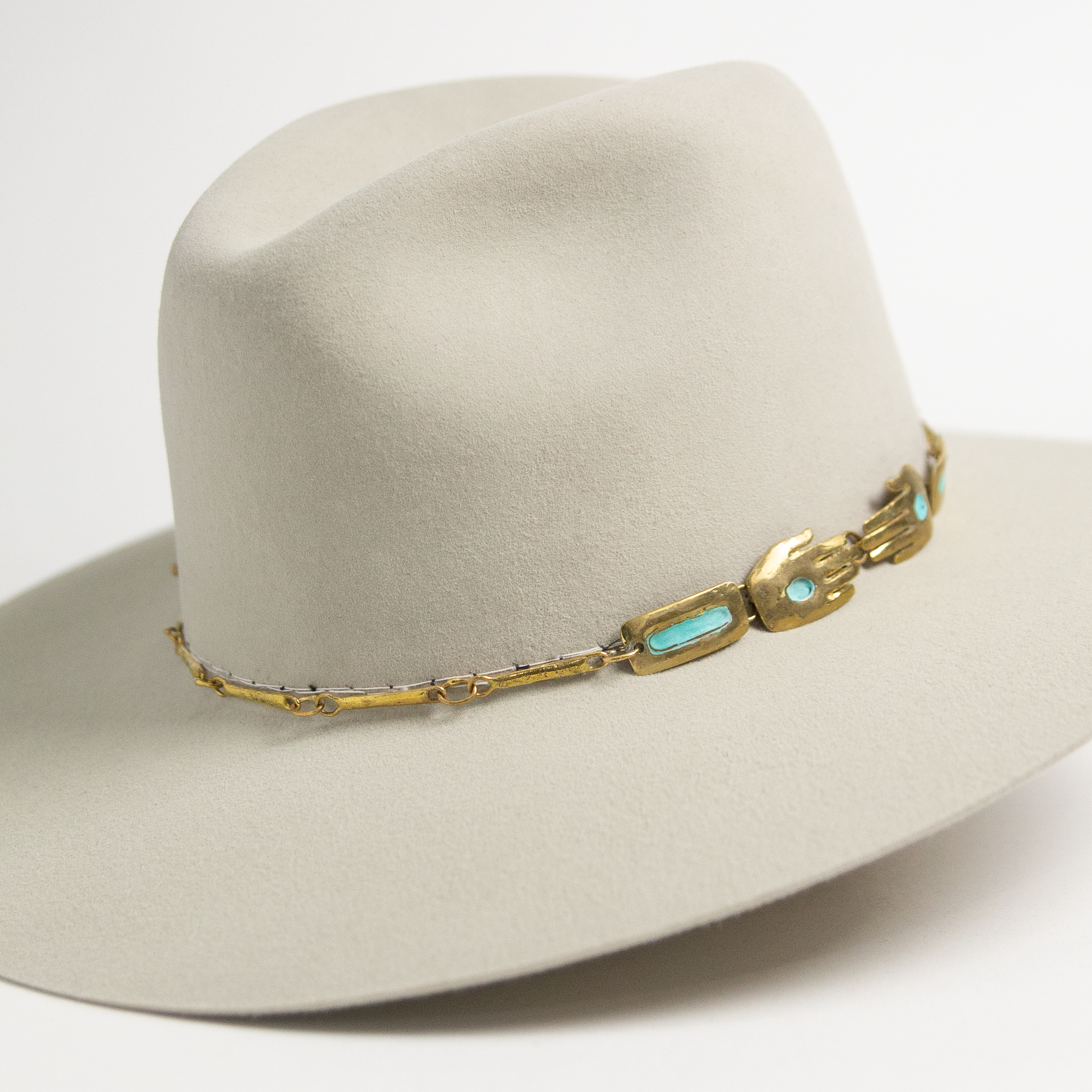 Mexican Brass Hat Band - Turquoise Hands