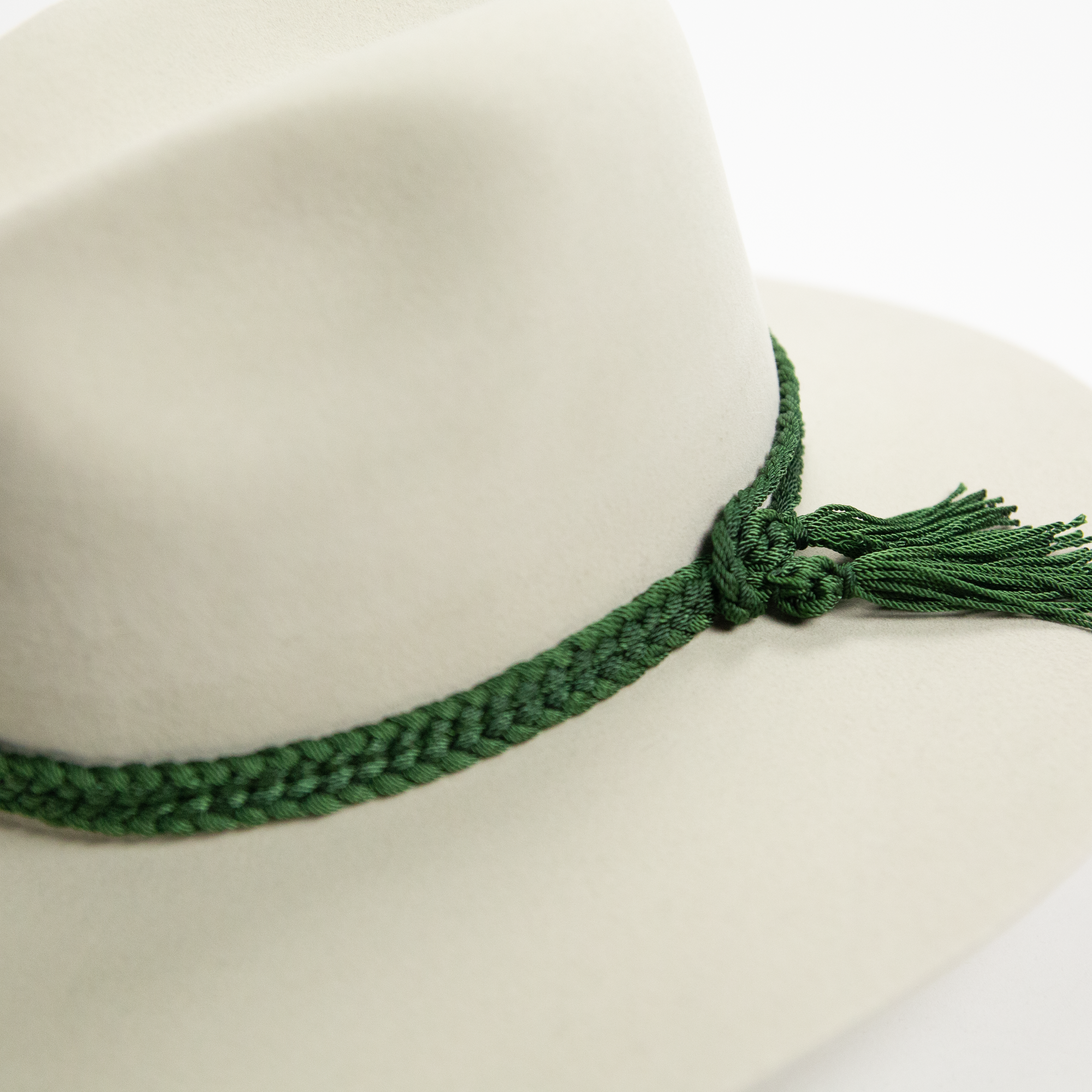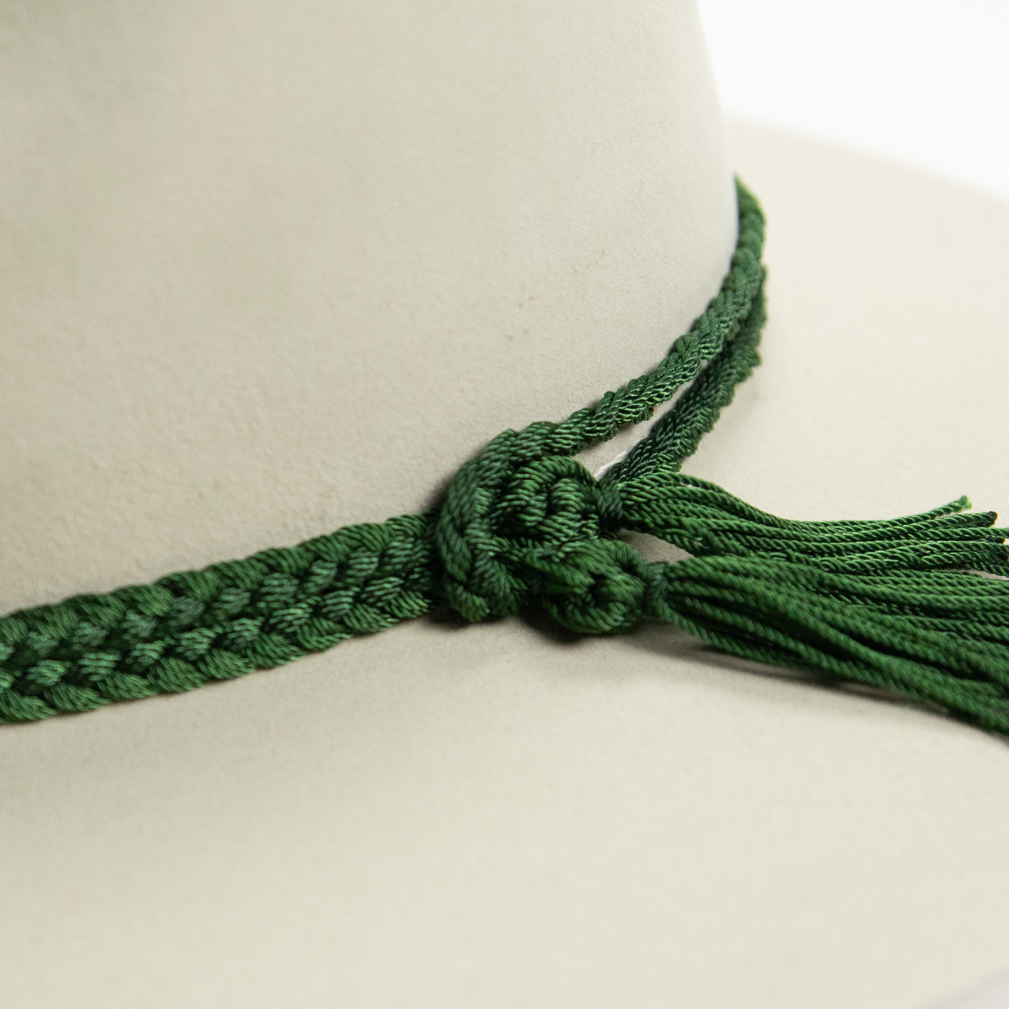 Artisan made in the Yucatán, we are so lucky to have these unique bands. Adorned with tassels on either end, this band is meant to make a statement. This braided cord is long enough to wrap around the hat twice. We recommend tying the band in a square knot.