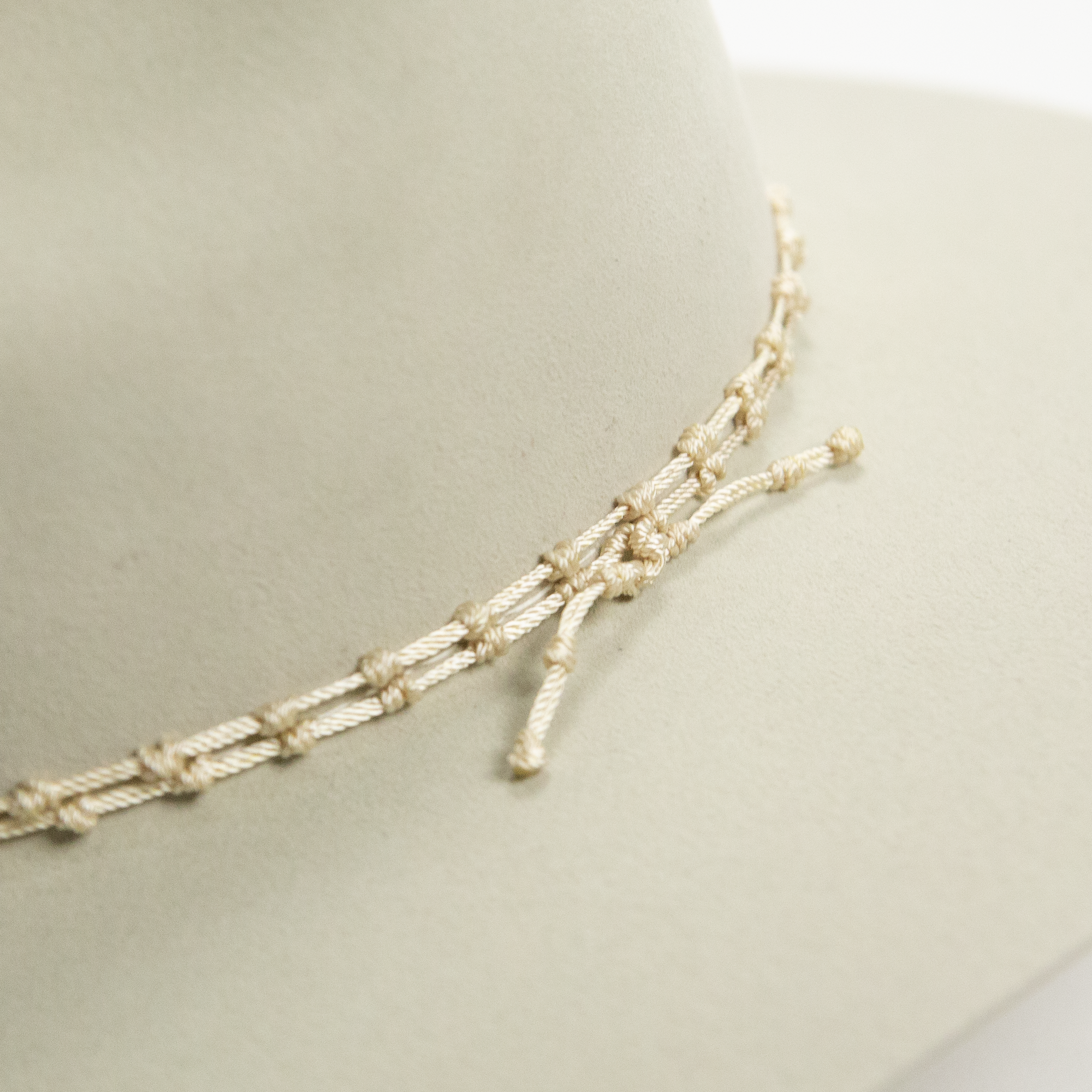 Artisan made in the Yucatán, we are so lucky to have these unique bands. Adorned with tassels on either end, this band is meant to make a statement. This chain-stitch cord is long enough to wrap around the hat twice. We recommend tying the band in a square knot.
