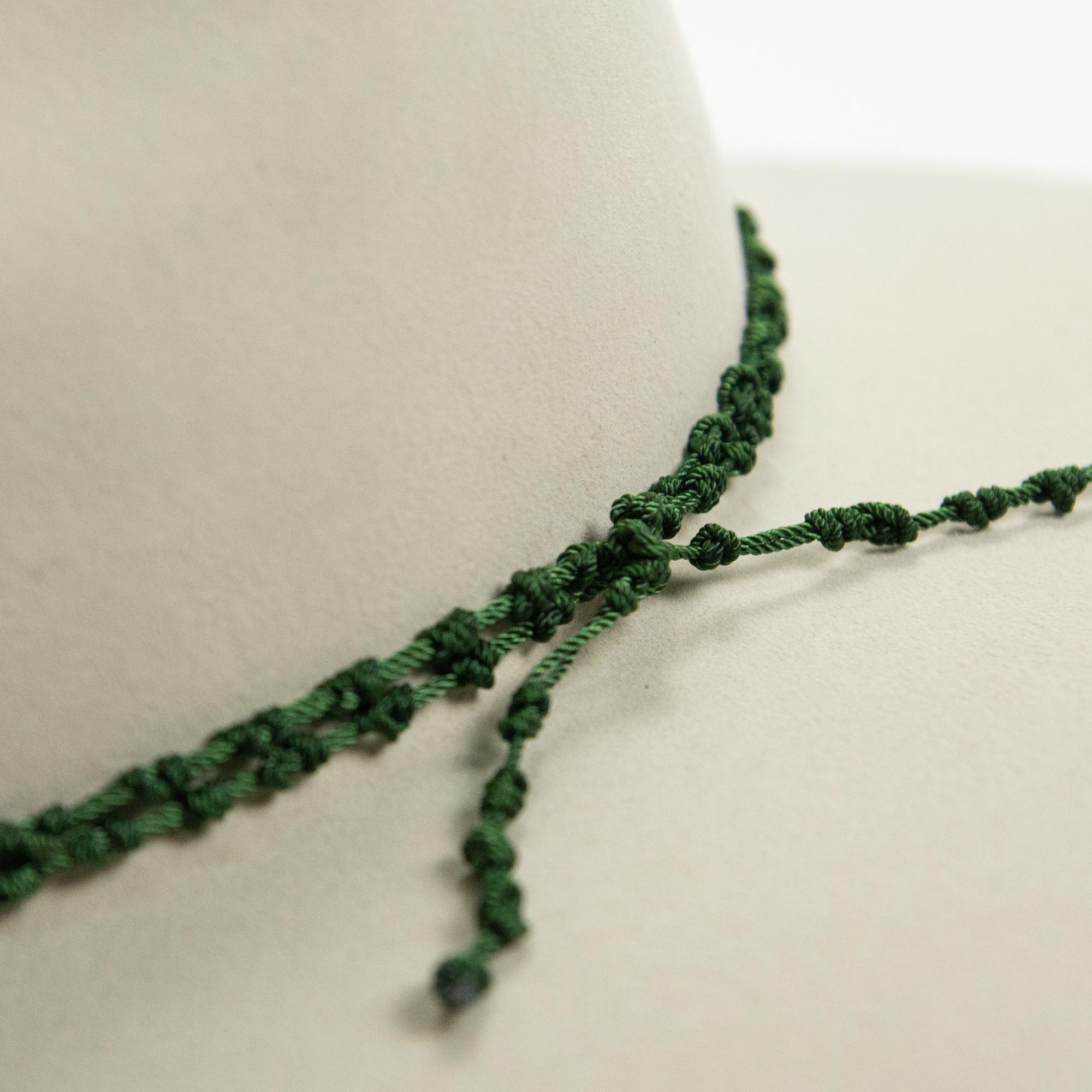 Artisan made in the Yucatán, we are so lucky to have these unique bands. Adorned with tassels on either end, this band is meant to make a statement. This chain-stitch cord is long enough to wrap around the hat twice. We recommend tying the band in a square knot.