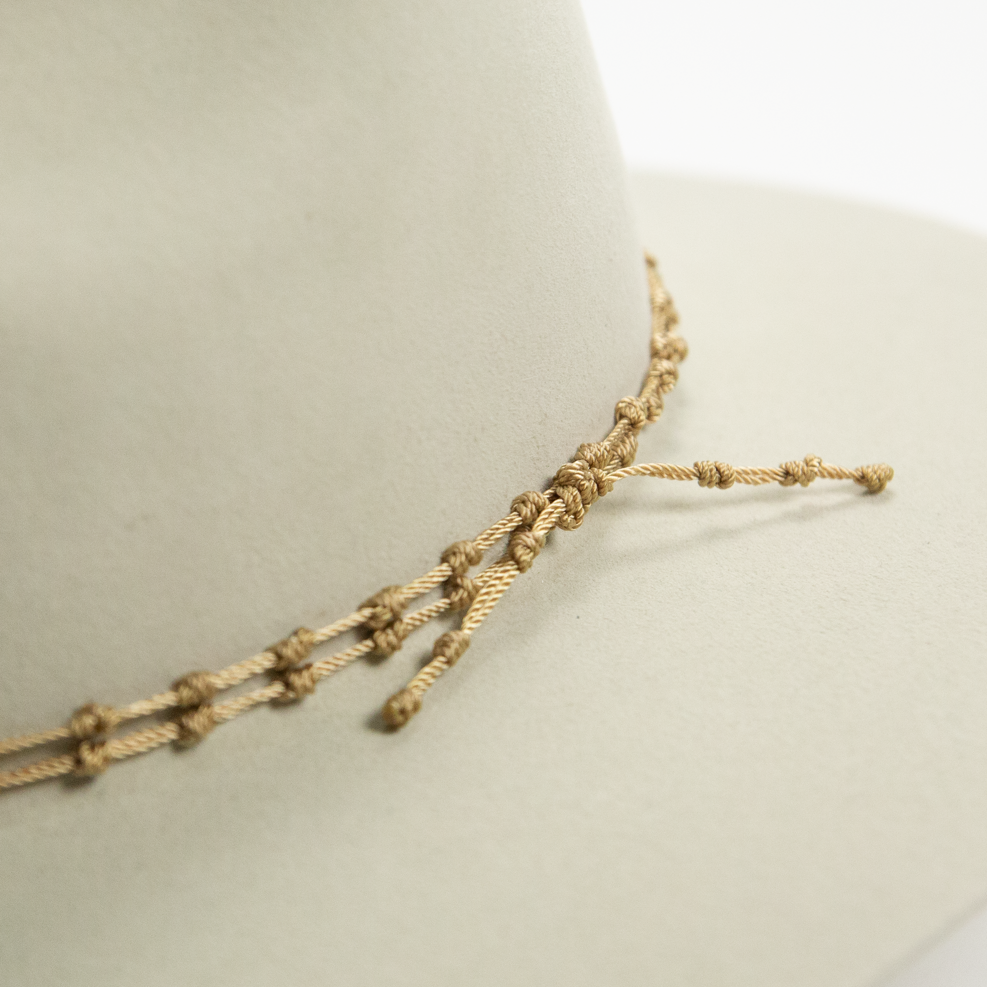 Artisan made in the Yucatán, we are so lucky to have these unique bands. Adorned with tassels on either end, this band is meant to make a statement. This chain-stitch cord is long enough to wrap around the hat twice. We recommend tying the band in a square knot.