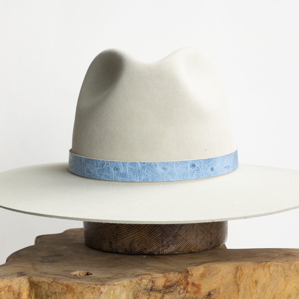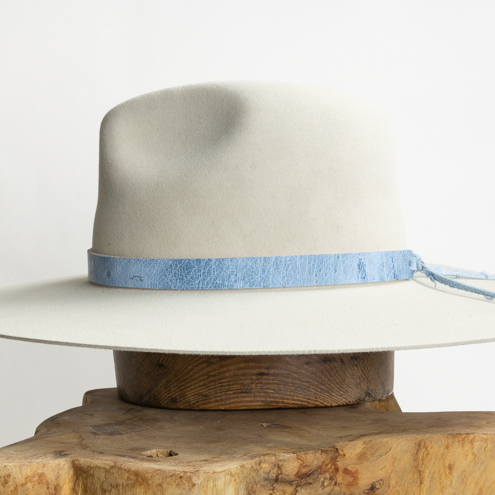 Ostrich leather bands that are more versatile than ever. The tie on this band makes it easy to swap out. Simply pull your band tight and secure with a square knot on either the left side or back of your hat. Handmade right here in Austin, TX.