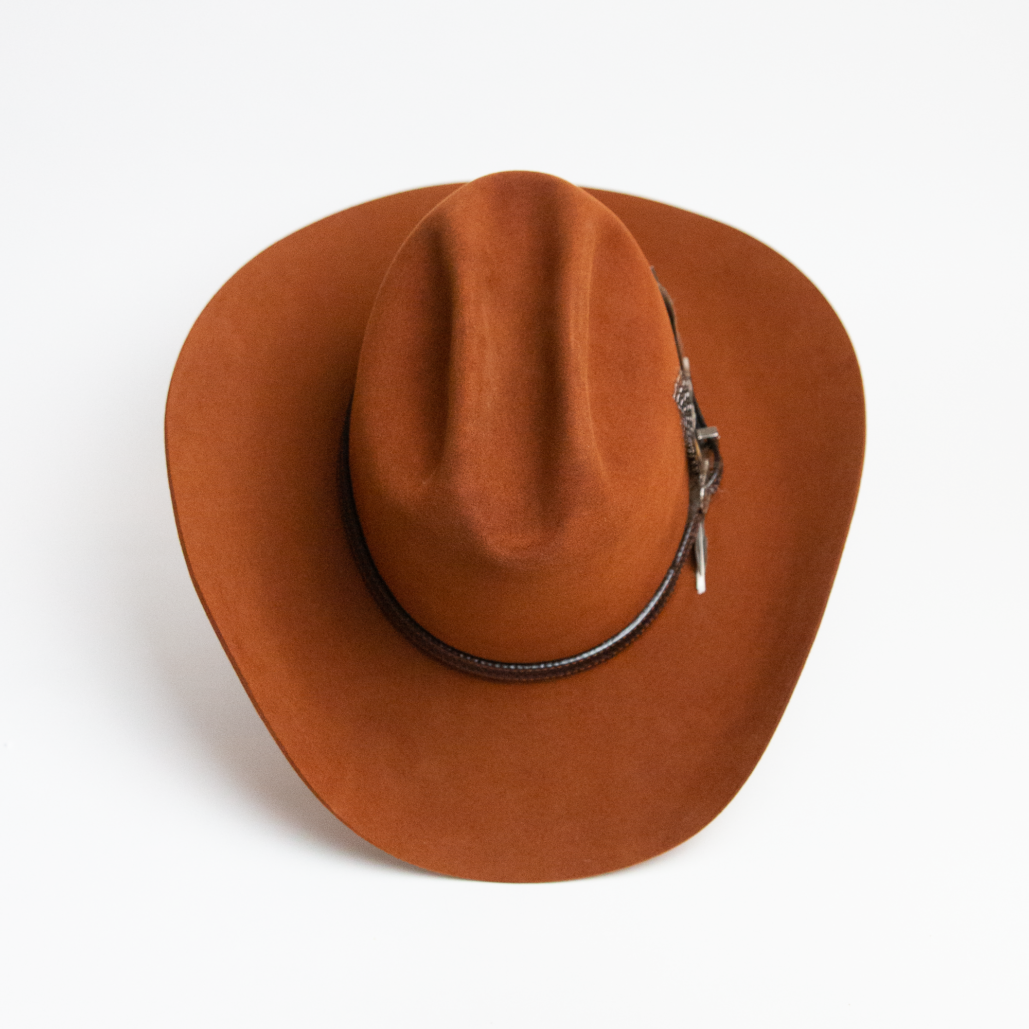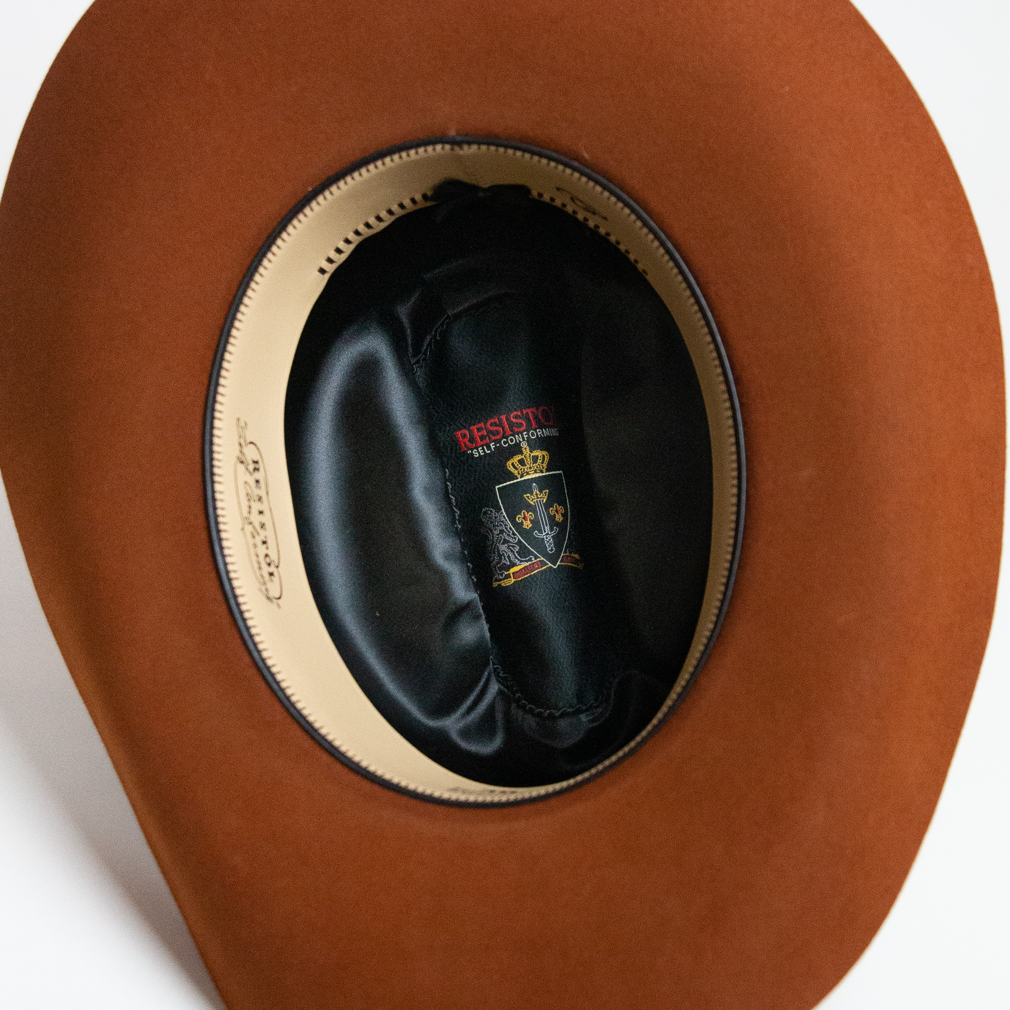 The Javalina Clay Cattleman is a 30X quality beaver felt hat shaped in a classic cattleman crease and flanged brim. This hat is named after the clay found in Big Bend National Park. The crown is lined with a black satin liner featuring the Resistol crest. The sheepskin liner will naturally conform to the shape of your head over time.