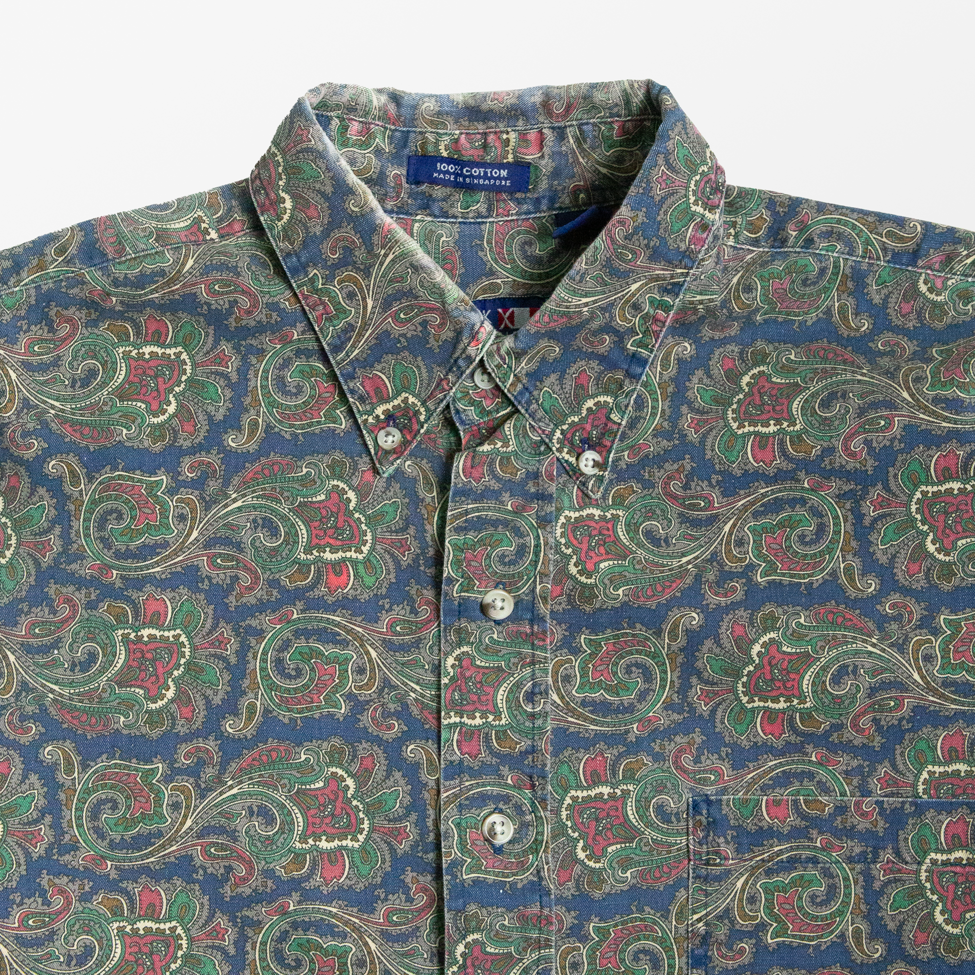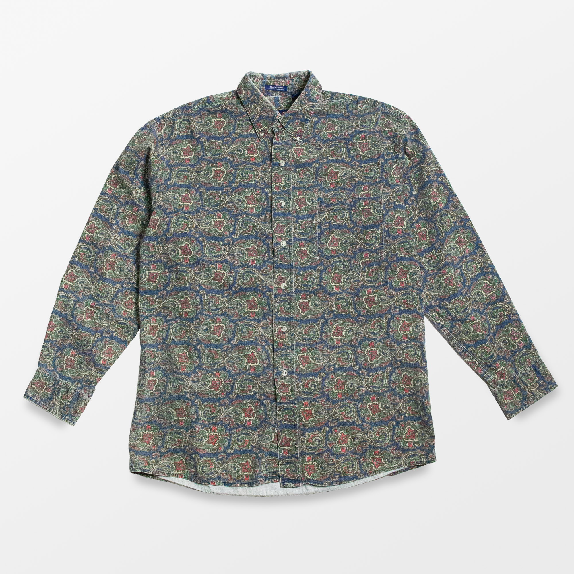 90s Paisley - Blue, Green, Red Long Sleeve Button Up