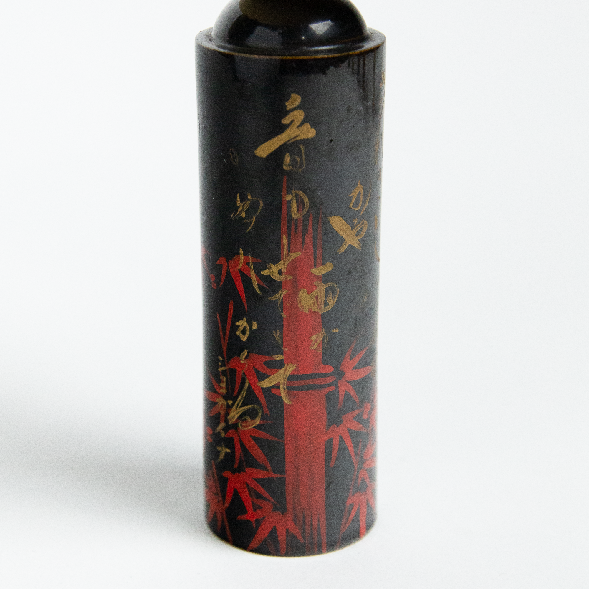 Featuring red bamboo illustration and hand written message. Made in Japan.