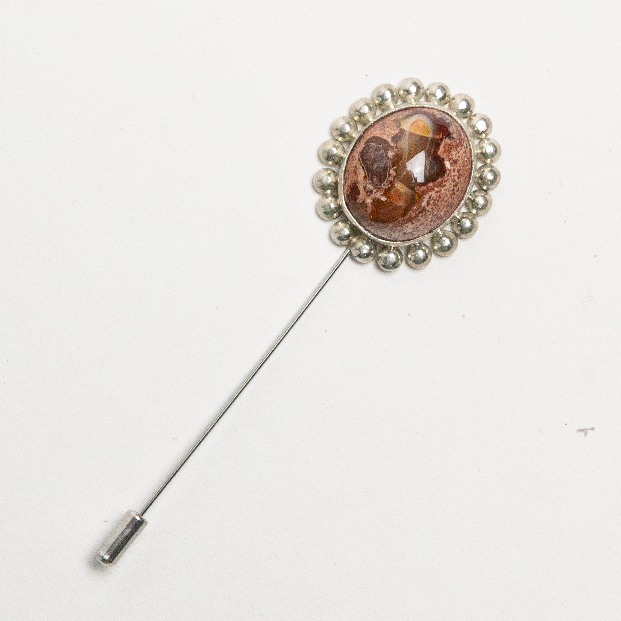 Handmade stick pin made with iridescent teardrop Mexican Opal stone. Sterling silver. Made in Mexico for Maufrais.