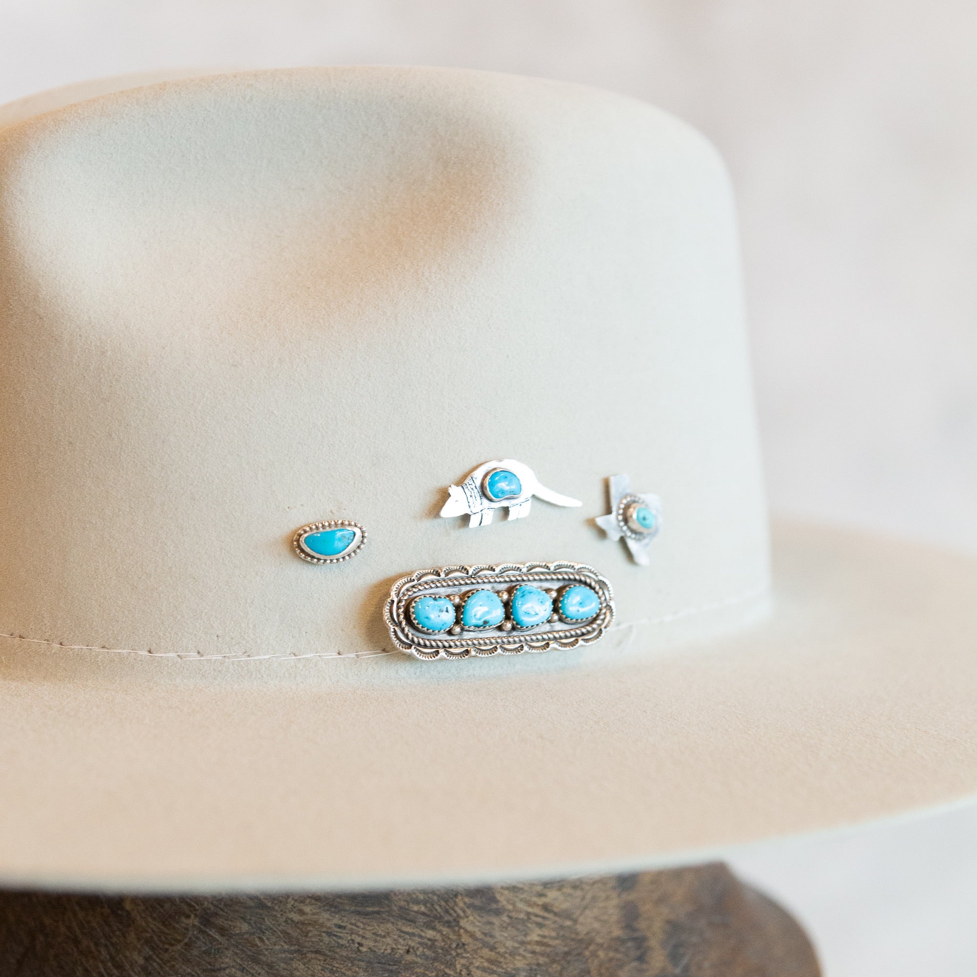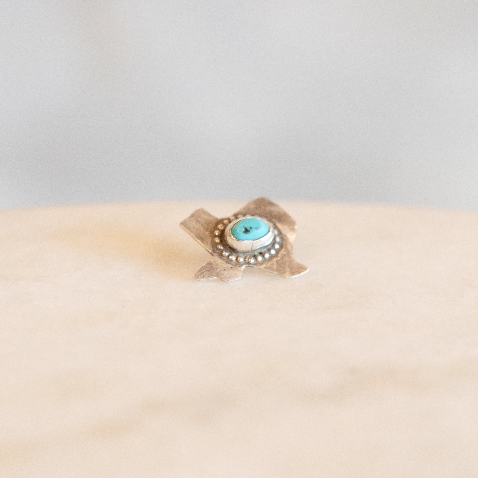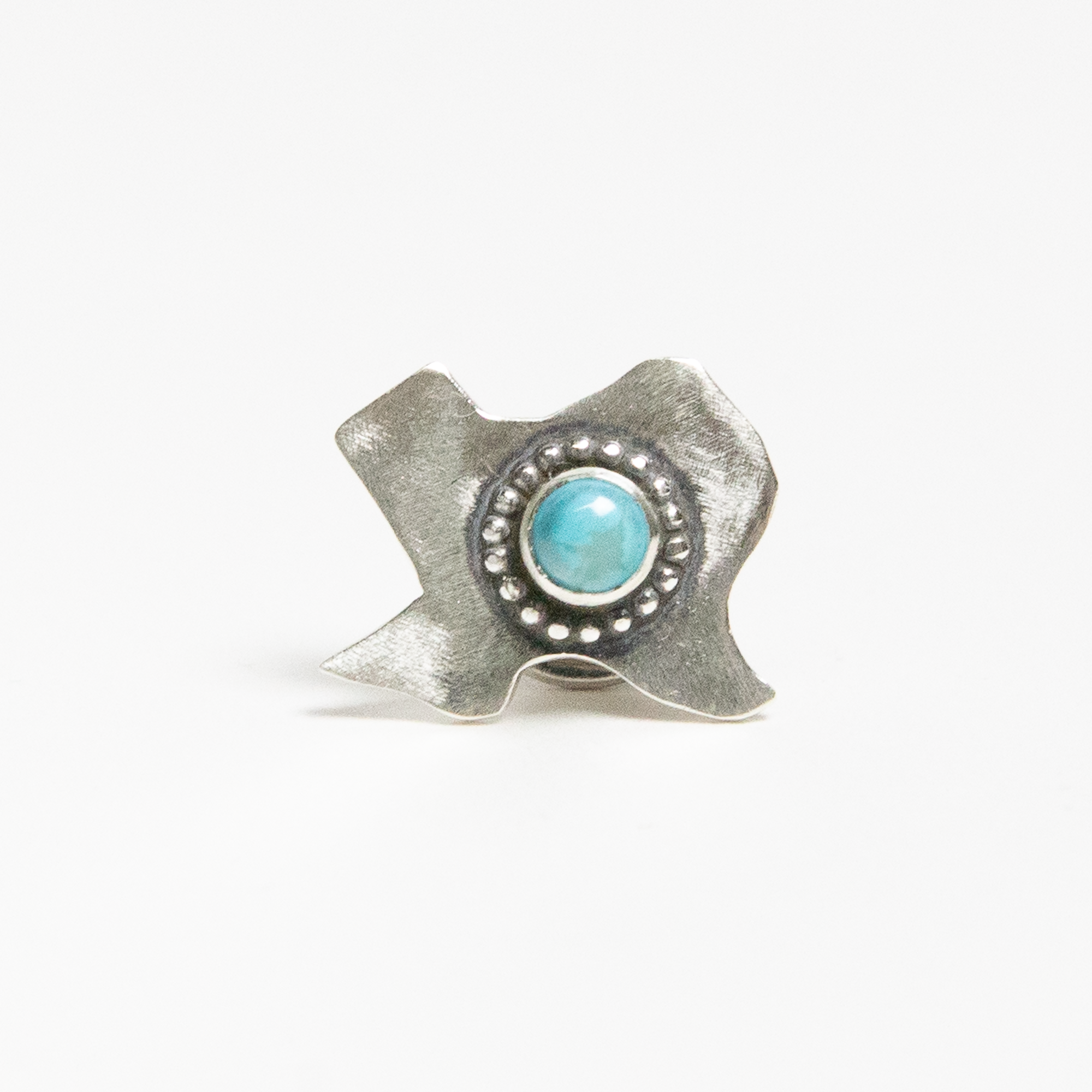 Sleeping Beauty Turquoise and Sterling Silver in the shape of Texas. Made by Station 19 exclusively for Maufrais.