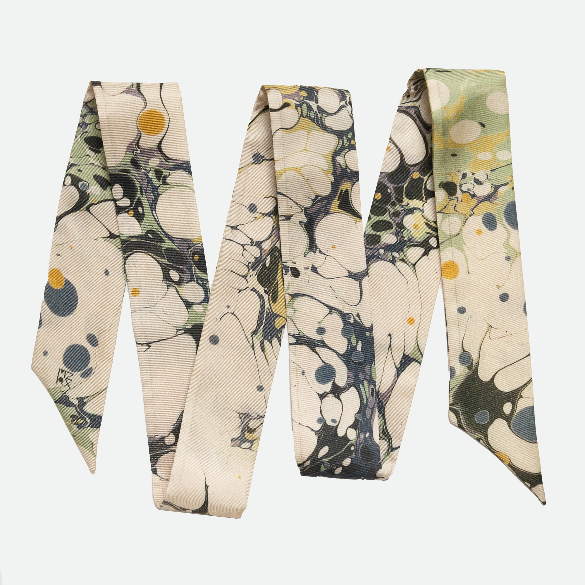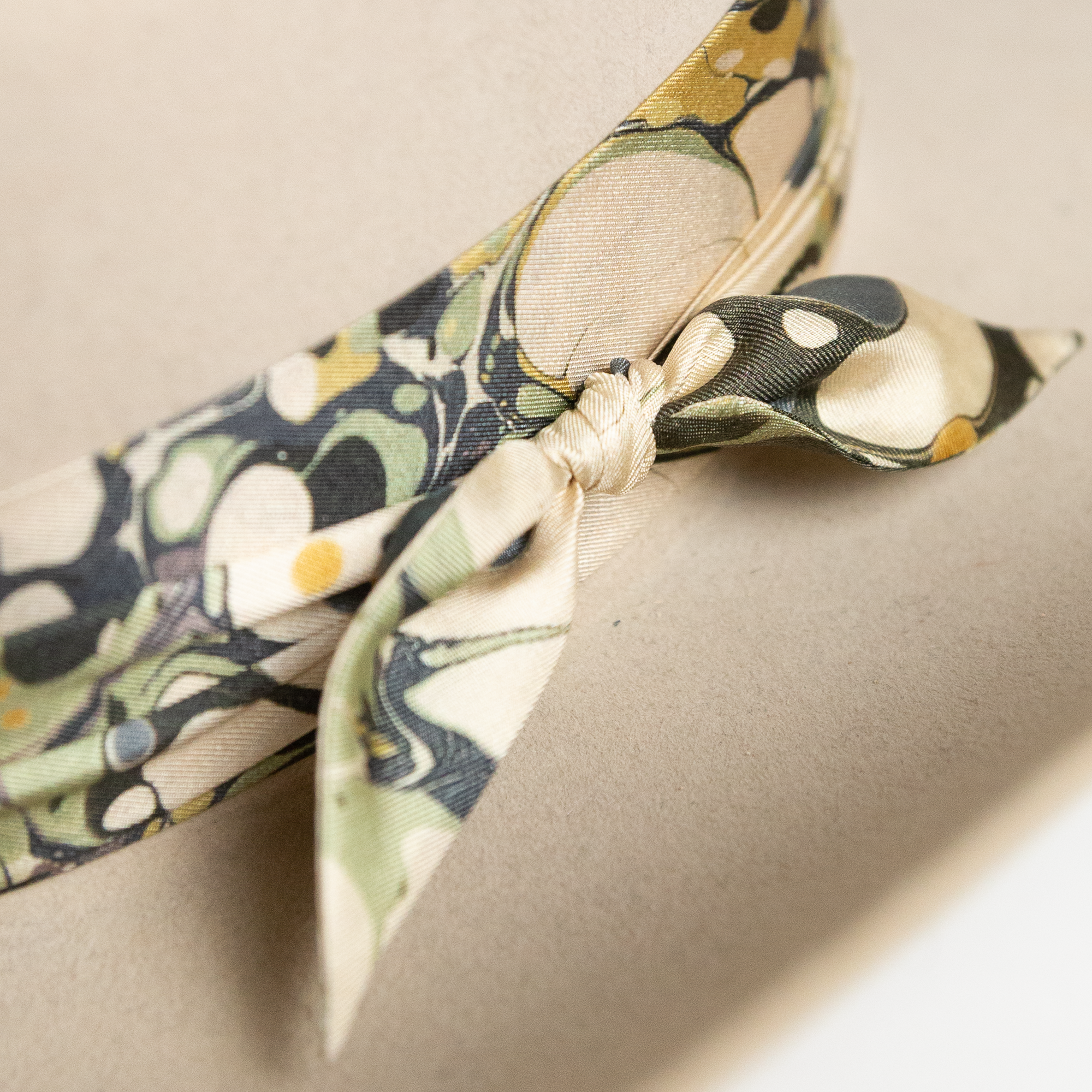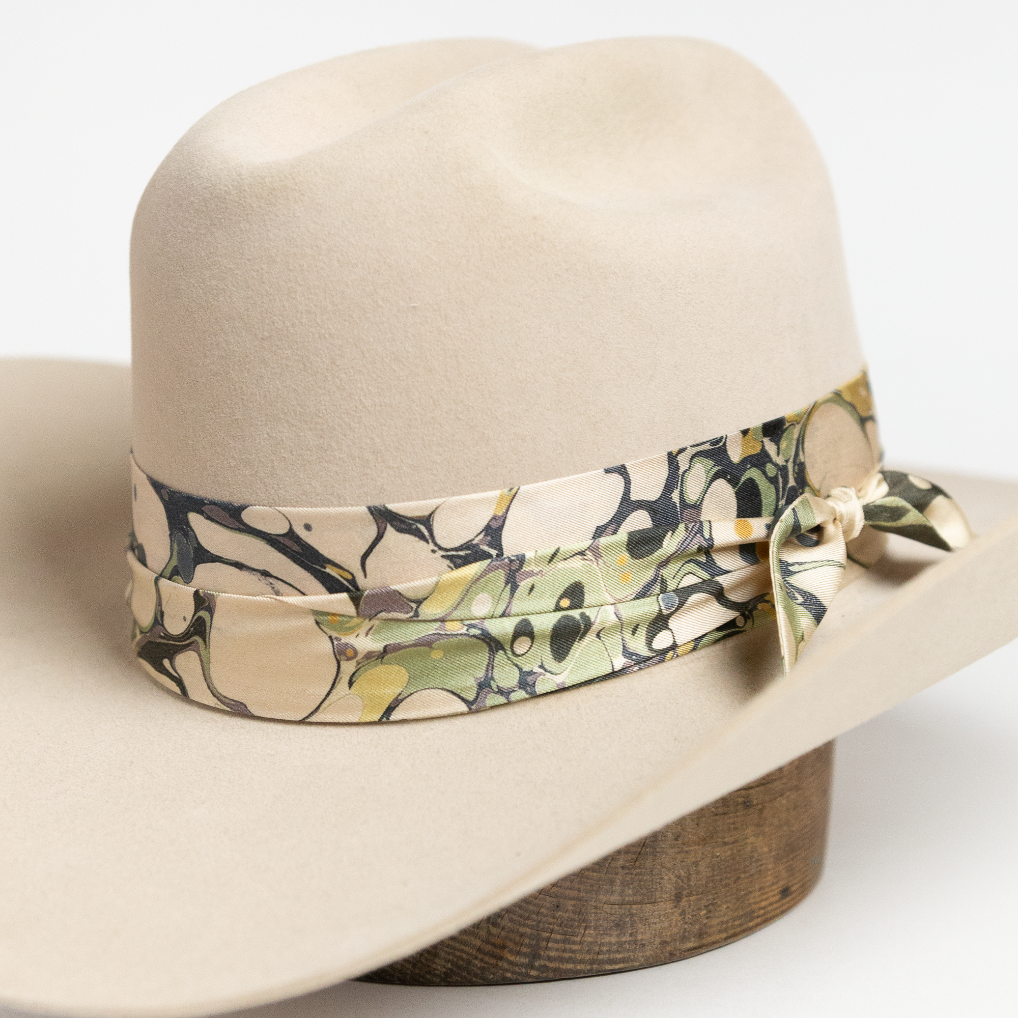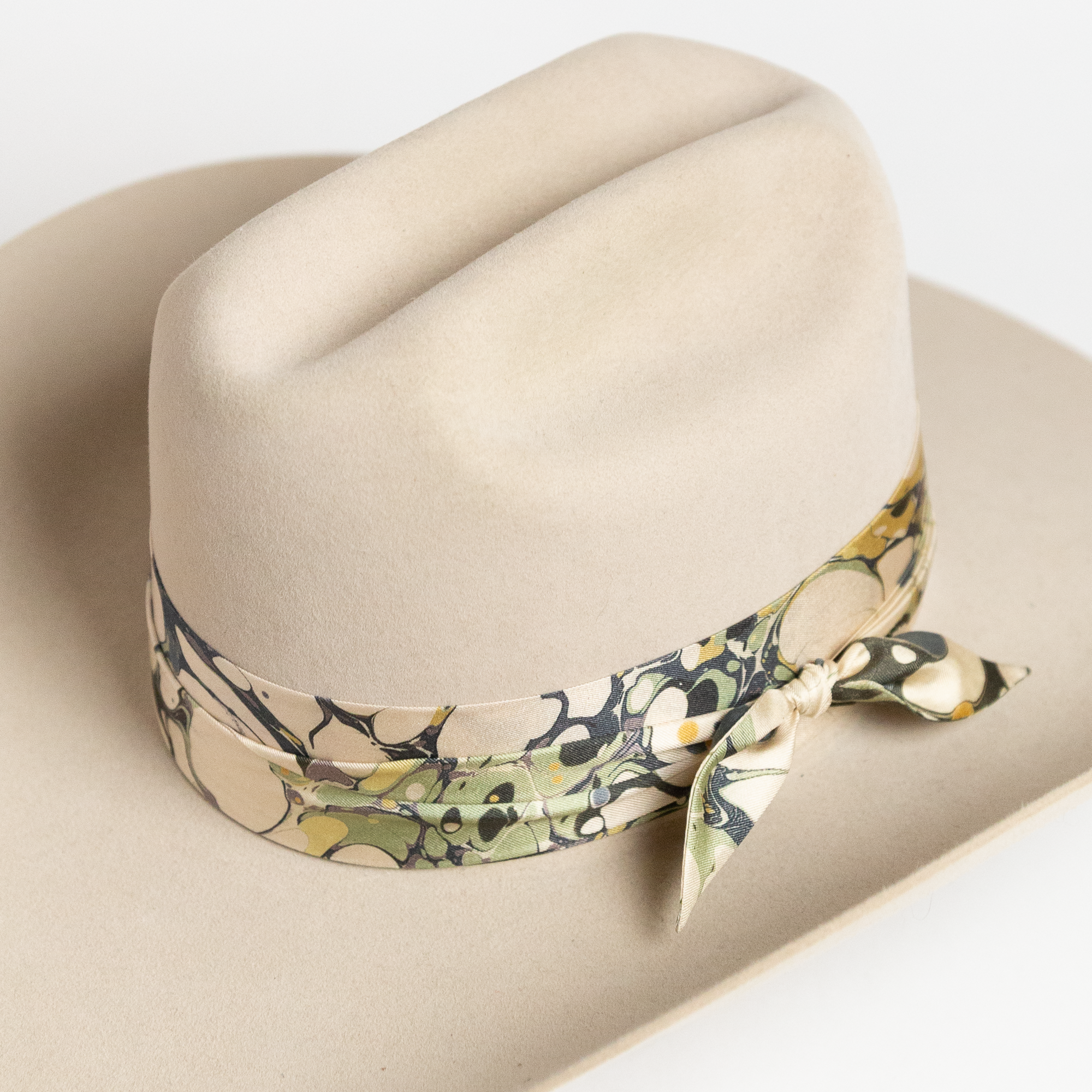 Exclusive collaboration with local Austin artist Mercedez Rex. Silk hat bands to wrap around hats one-two times. Two-time wrap will work best for hat size 6 3/4 - 7 1/4.