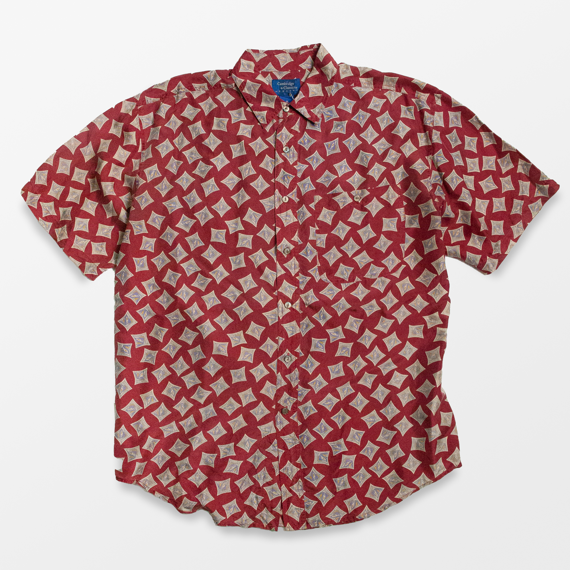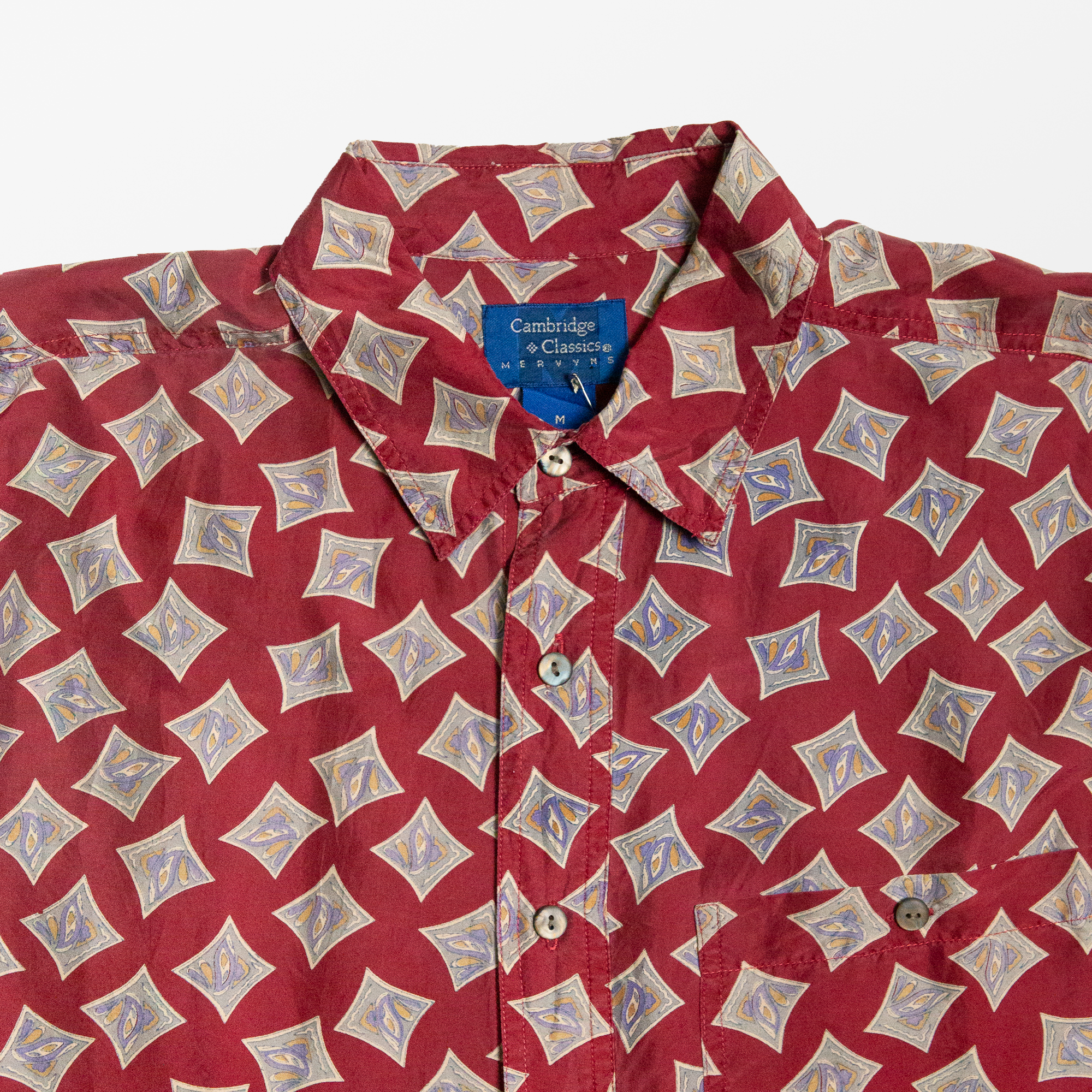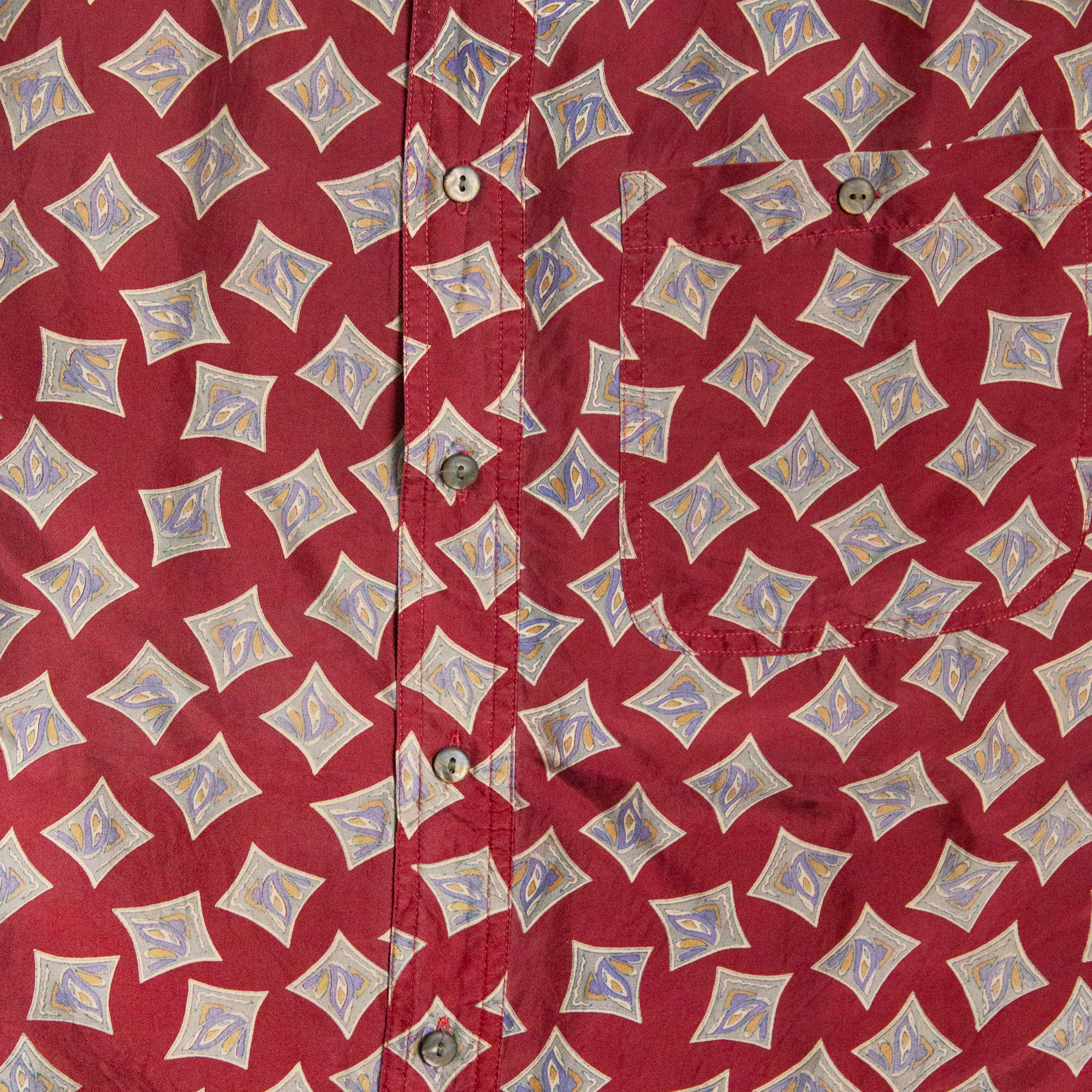 Vintage 90s Maroon Funky Diamond Print Silk Shirt