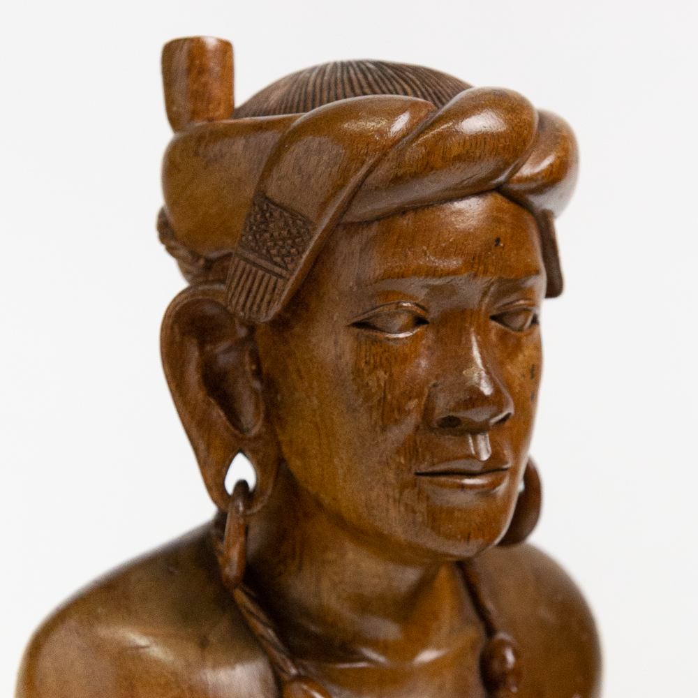 Hand carved male figure in indigenous dress. Man and woman statue sold separately.