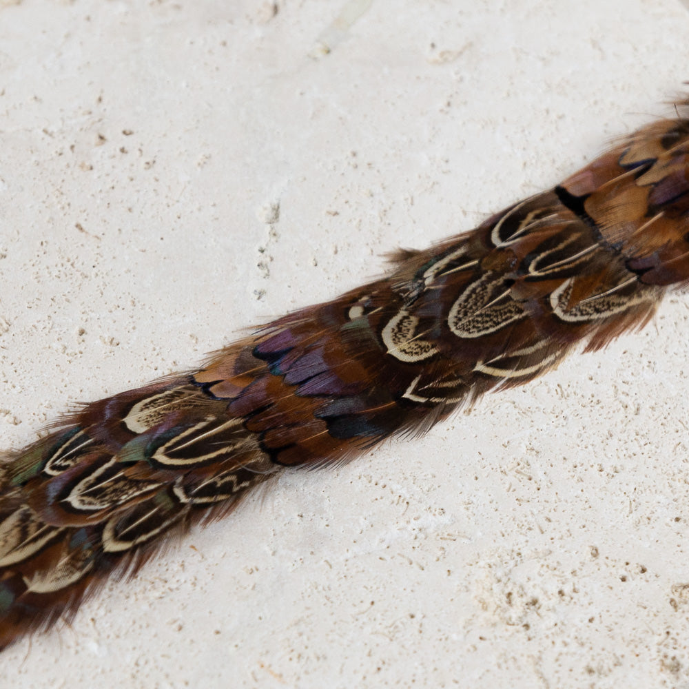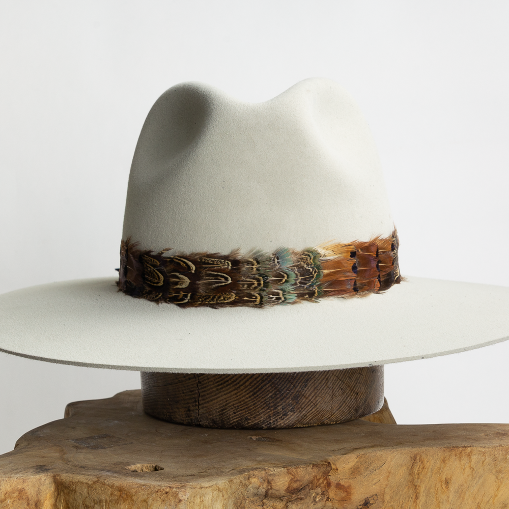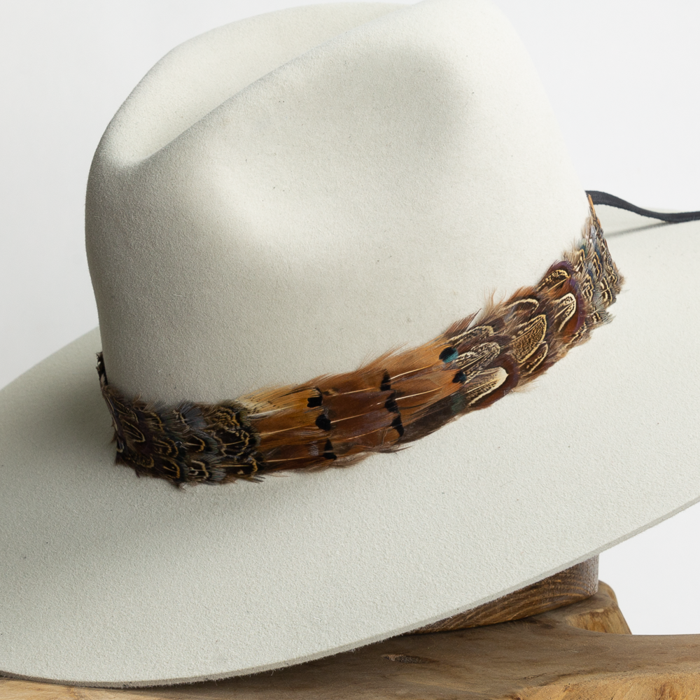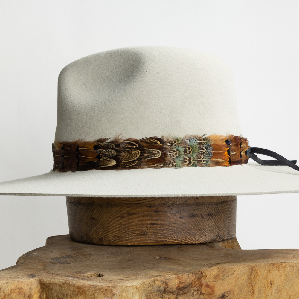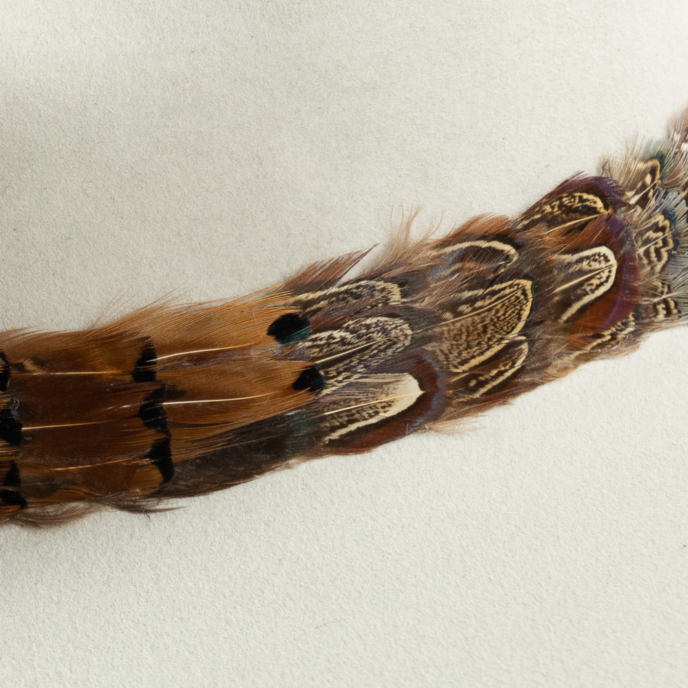 *Do not wear in higher temperatures. Feathers are delicately adhered, using a low-heat glue. For best results, wear with your favorite felt hat on cool, crisp days.
