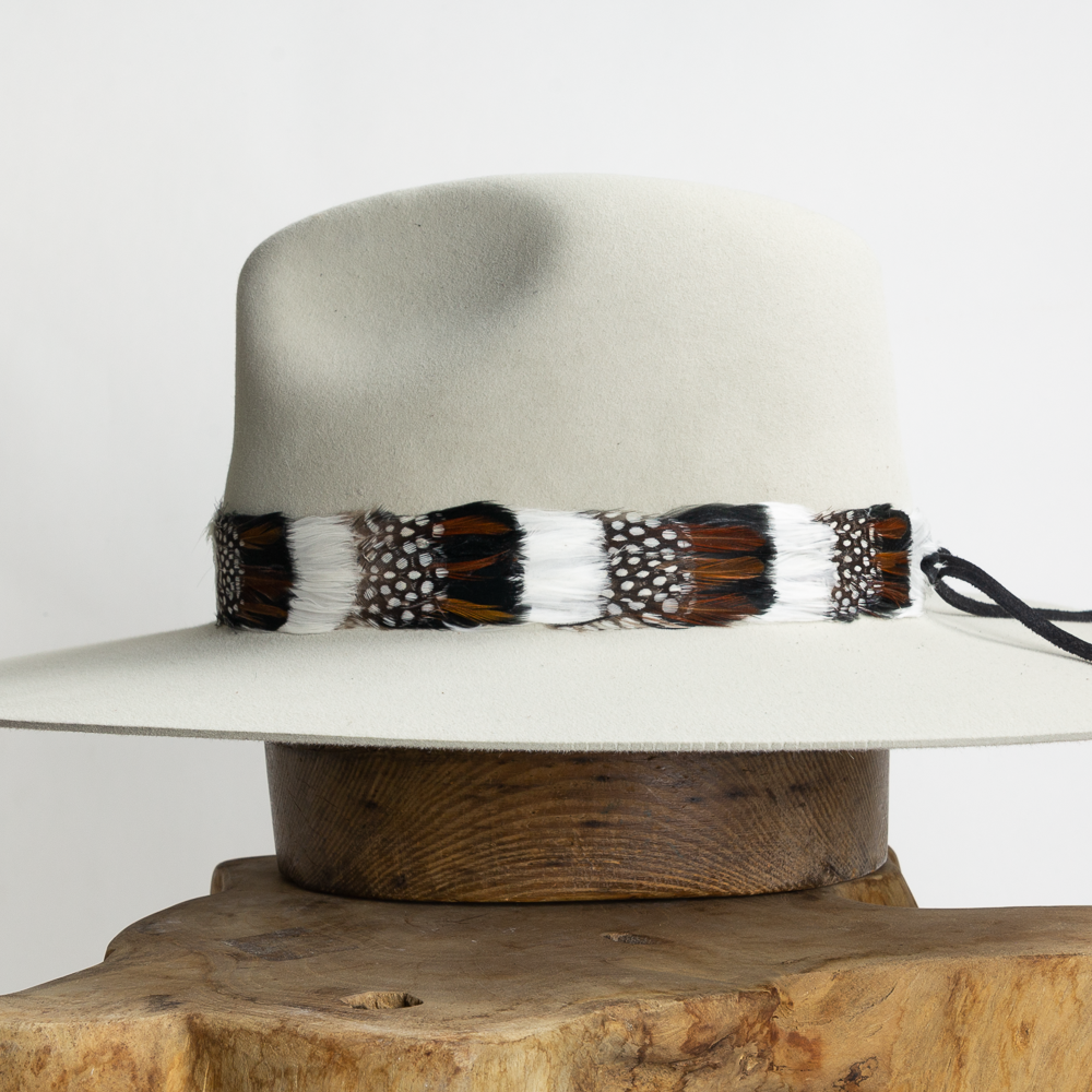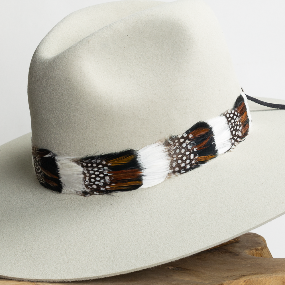 *Do not wear in higher temperatures. Feathers are delicately adhered, using a low-heat glue. For best results, wear with your favorite felt hat on cool, crisp days.