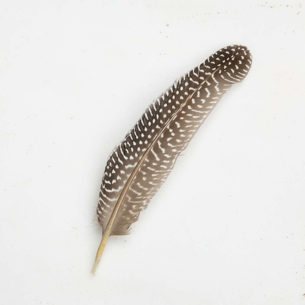 The perfect neutral gray, we love this feather to keep things tonal and add a subtle pattern. Wear this feather on its own or pair it with a friend! Trim to the length you prefer. A little hot glue goes a long way, so if you’re struggling to keep your band in place, dab a bit and voila! Everything will be a bit more secure for you.