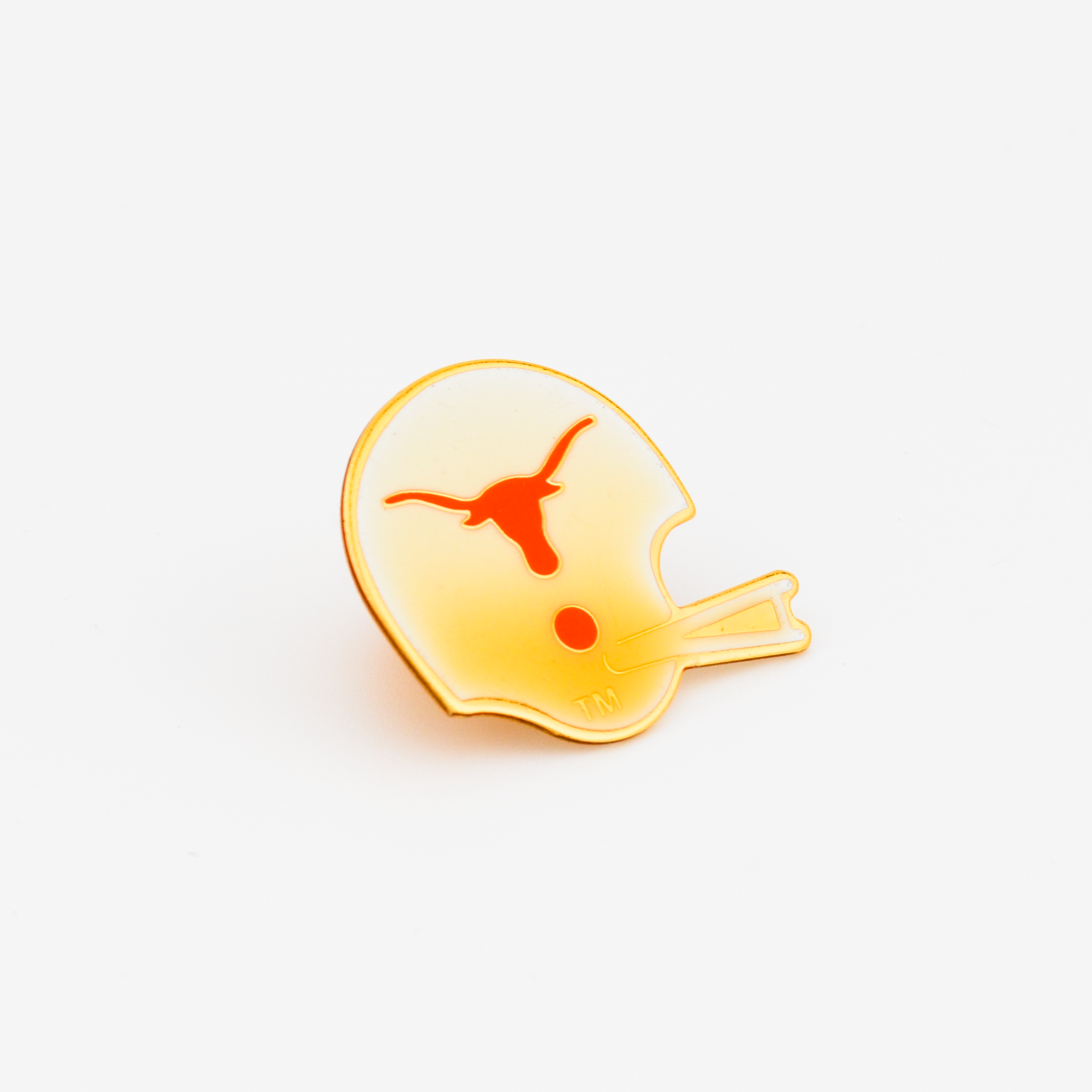 Vintage collegiate UT Pin with orange Longhorn logo on cream helmet. "Pin King 1992" imprint on the back.